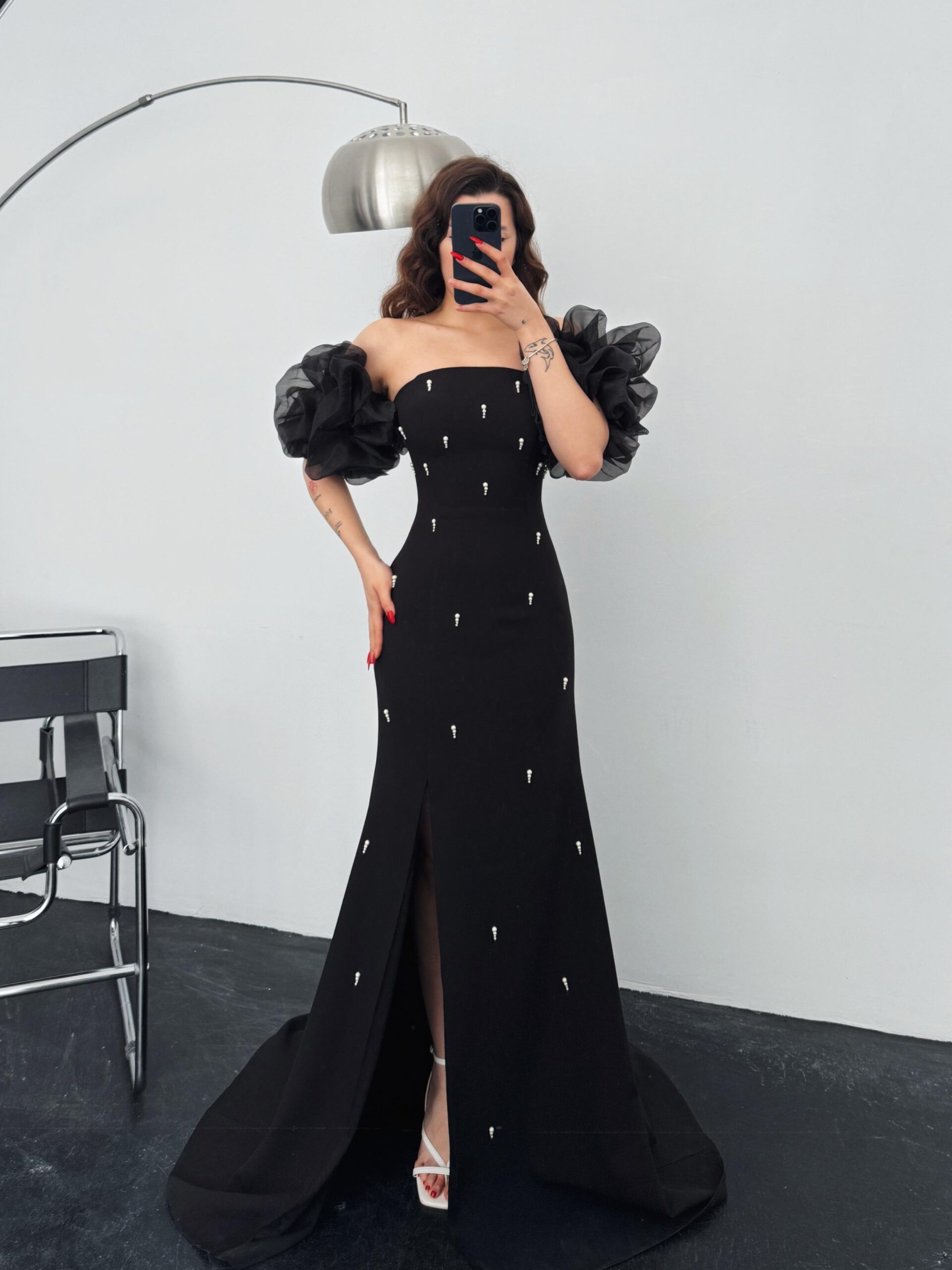 Annabel Balon Kol İnci Detay Siyah Abiye