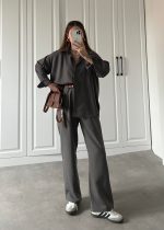 Antrasit Beli Kemerli Gofre İkili Takım