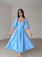 Bebe Mavisi Balon Kol Midi ERNEST Elbise