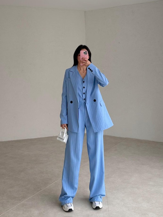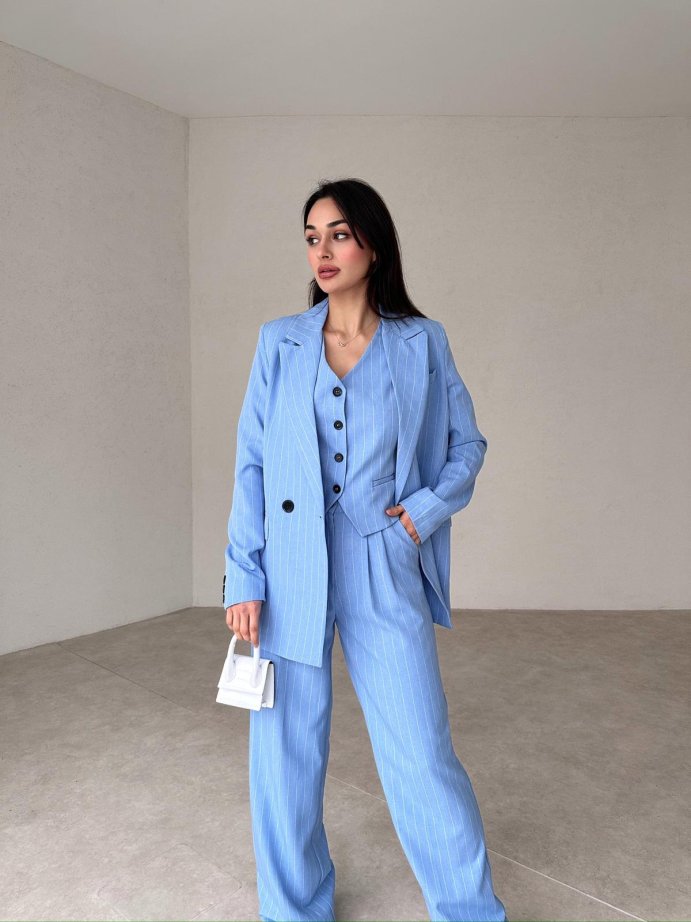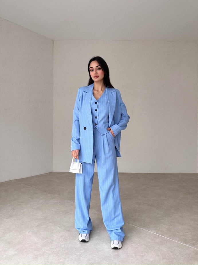 Çizgili Üçlü SALLY Takım tam kalıplıdır.