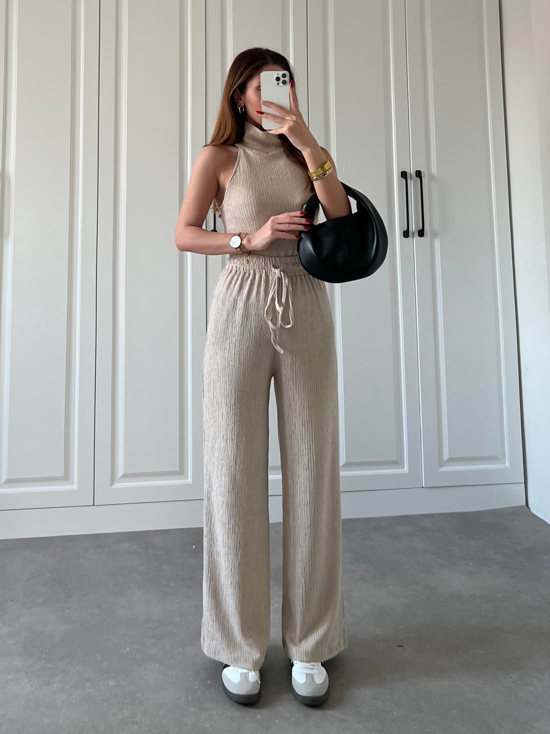 Ana Sayfa ÇOK SATANLAR Bej Halter Yaka Krinkıl Takım