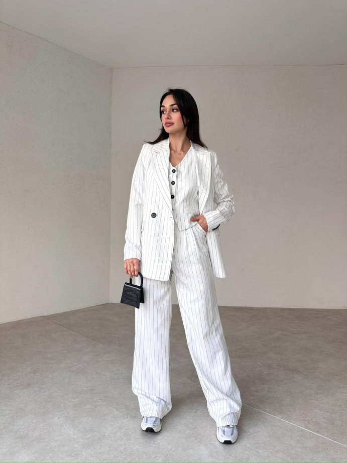 Çizgili Üçlü SALLY Takım tam kalıplıdır.