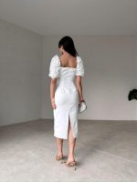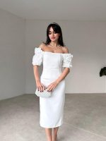 Beyaz Fırfır Kollu Midi ANJELİKA Elbise