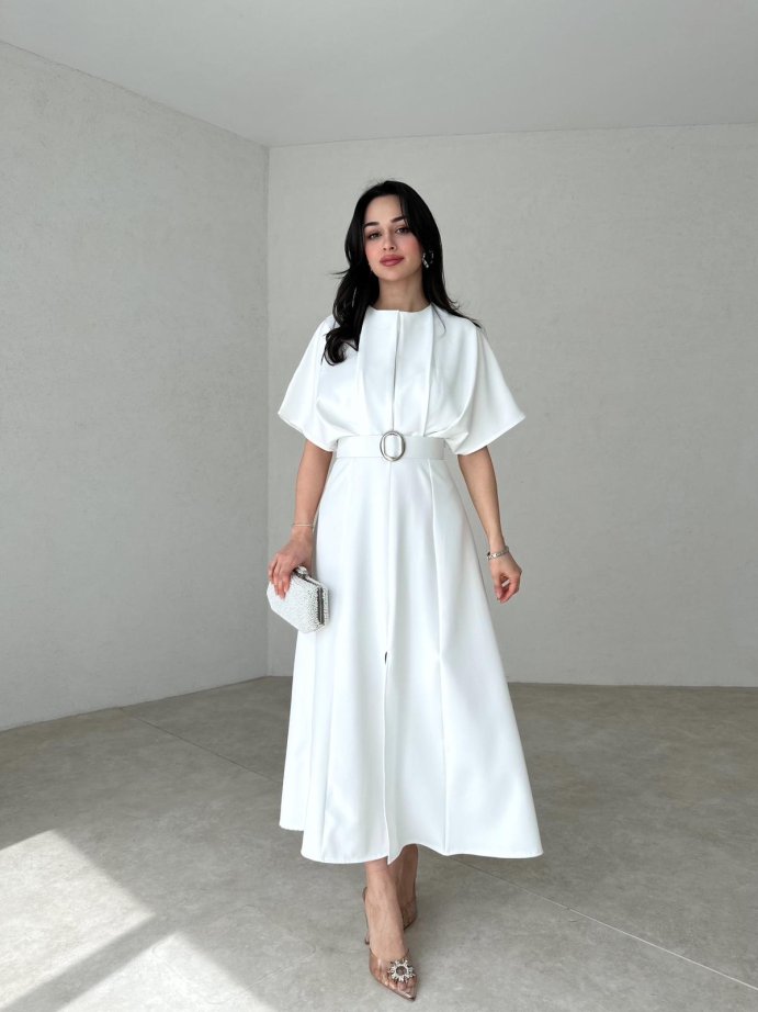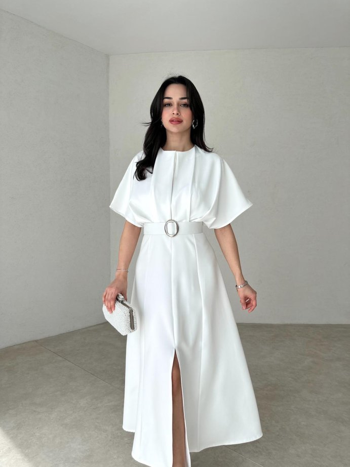 Beyaz Kemer Detaylı Midi ARTHUR Elbise
