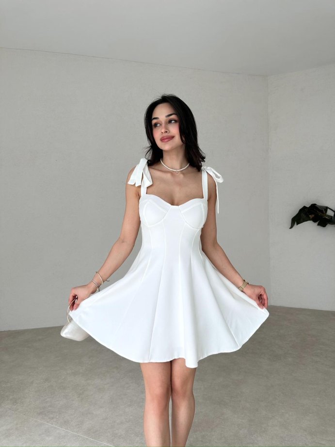 Omuzu Bağlamalı Mini SAMMY Elbise tam kalıplıdır.
