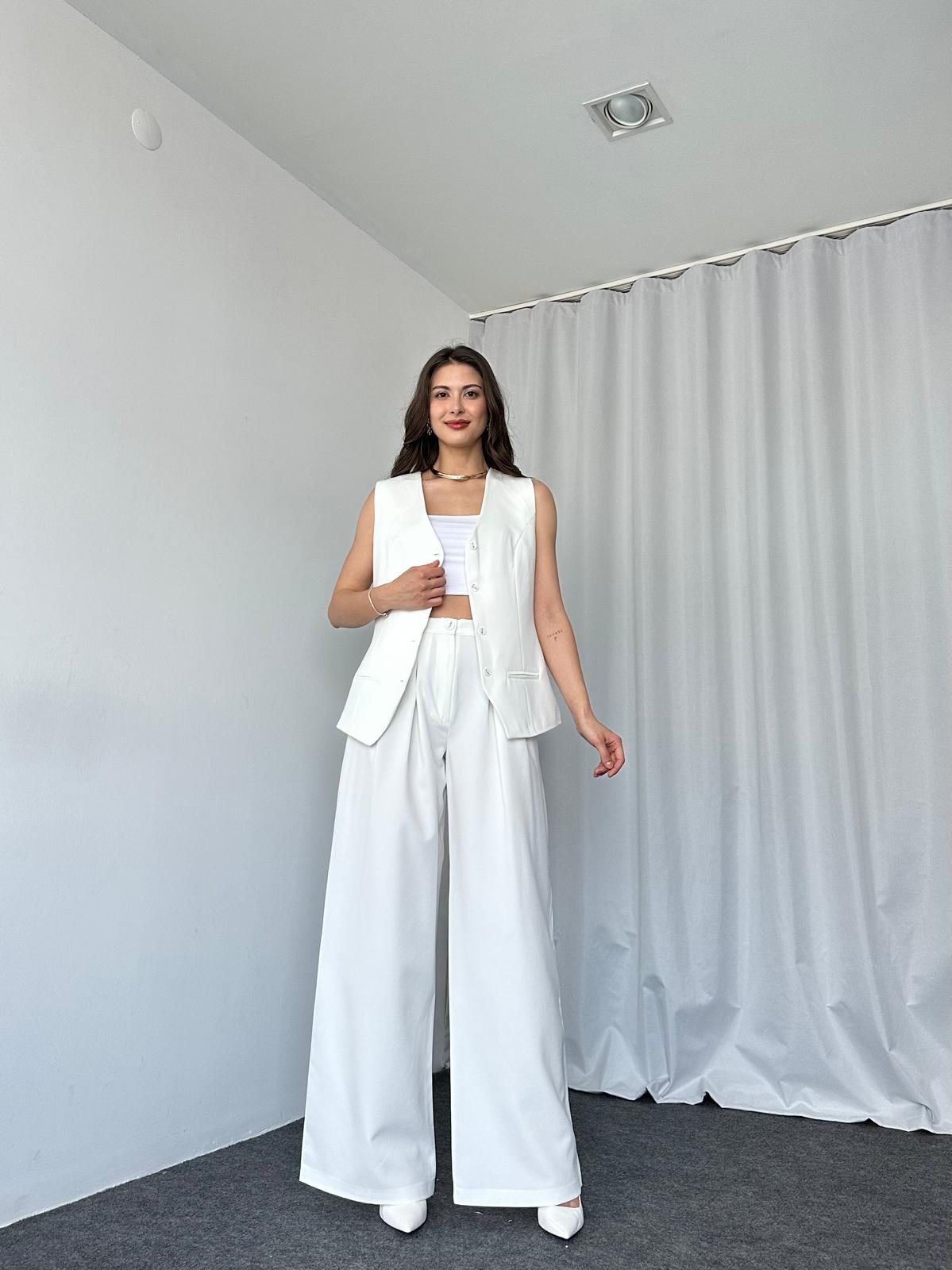 Ana Sayfa ÇOK SATANLAR Beyaz Oversize Yelek-Pantolon Takım