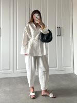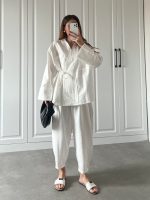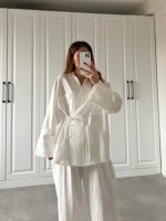 Ana Sayfa ÇOK SATANLAR Beyaz Yandan Bağlamalı Coton Kimono Takım