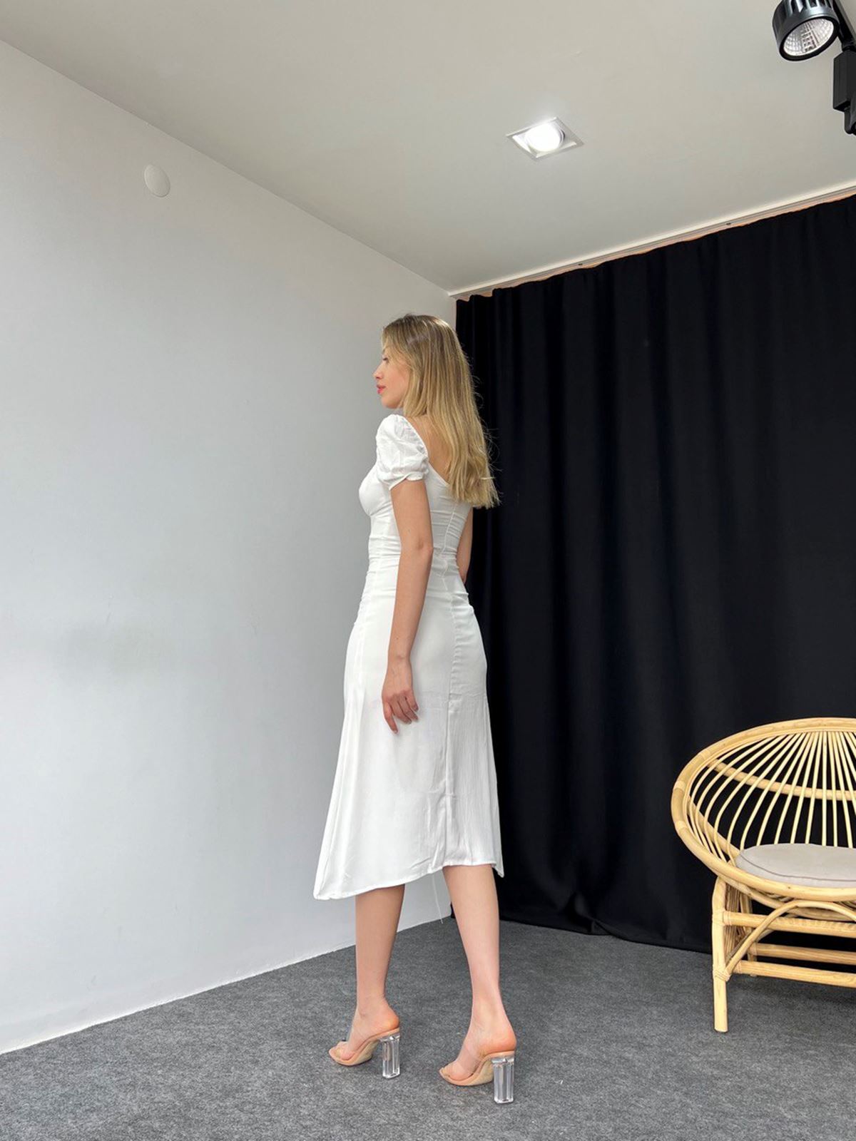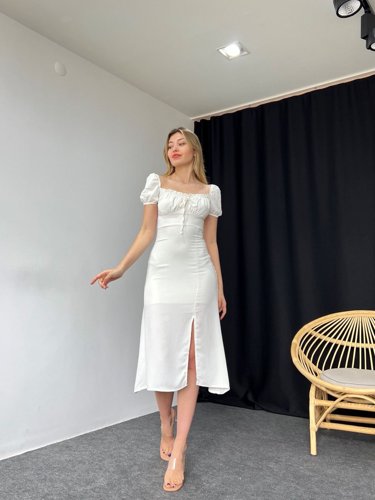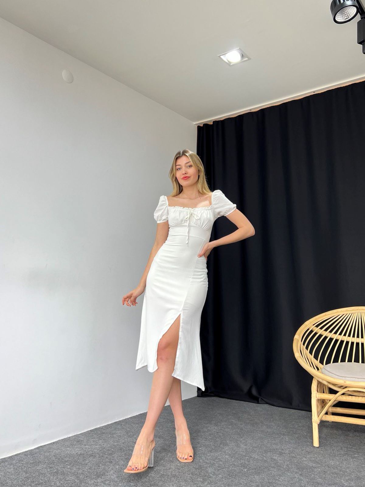 Ana Sayfa Elbise Beyaz Yırtmaçlı Elbise