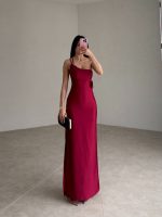Bordo Drapeli Saten Kumaş Midi VENLO Elbise ₺999,00 Orijinal fiyat: ₺999,00.₺499,00Şu andaki fiyat: ₺499,00.