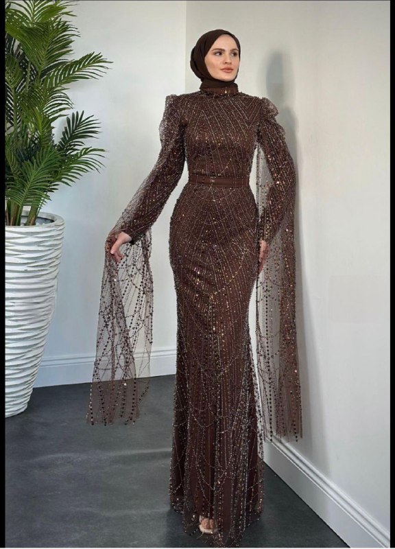 Ana Sayfa ÇOK SATANLAR Brunella Pelerinli Taş İşlemeli Balık Model Abiye Kahverengi