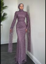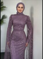 Brunella Pelerinli Taş İşlemeli Balık Model Abiye Lila