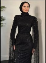 Brunella Pelerinli Taş İşlemeli Balık Model Abiye Siyah