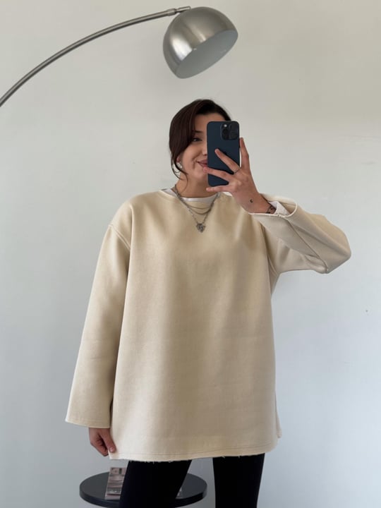 Buller Bej Bisiklet Yaka Oversize Sweatshirt