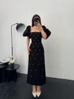 Ana Sayfa ÇOK SATANLAR Calenda Balon Kol İnci Detay Siyah Elbise