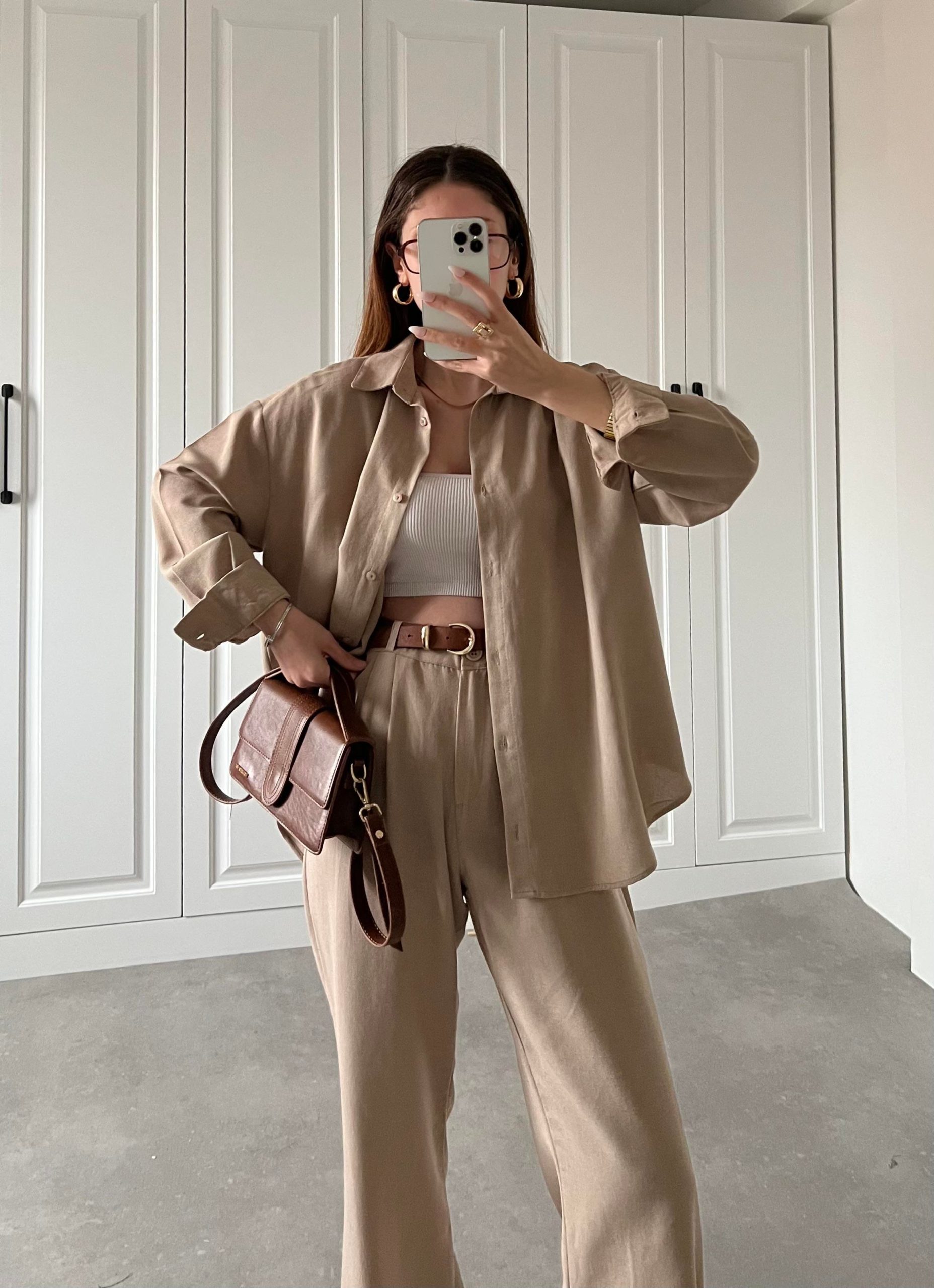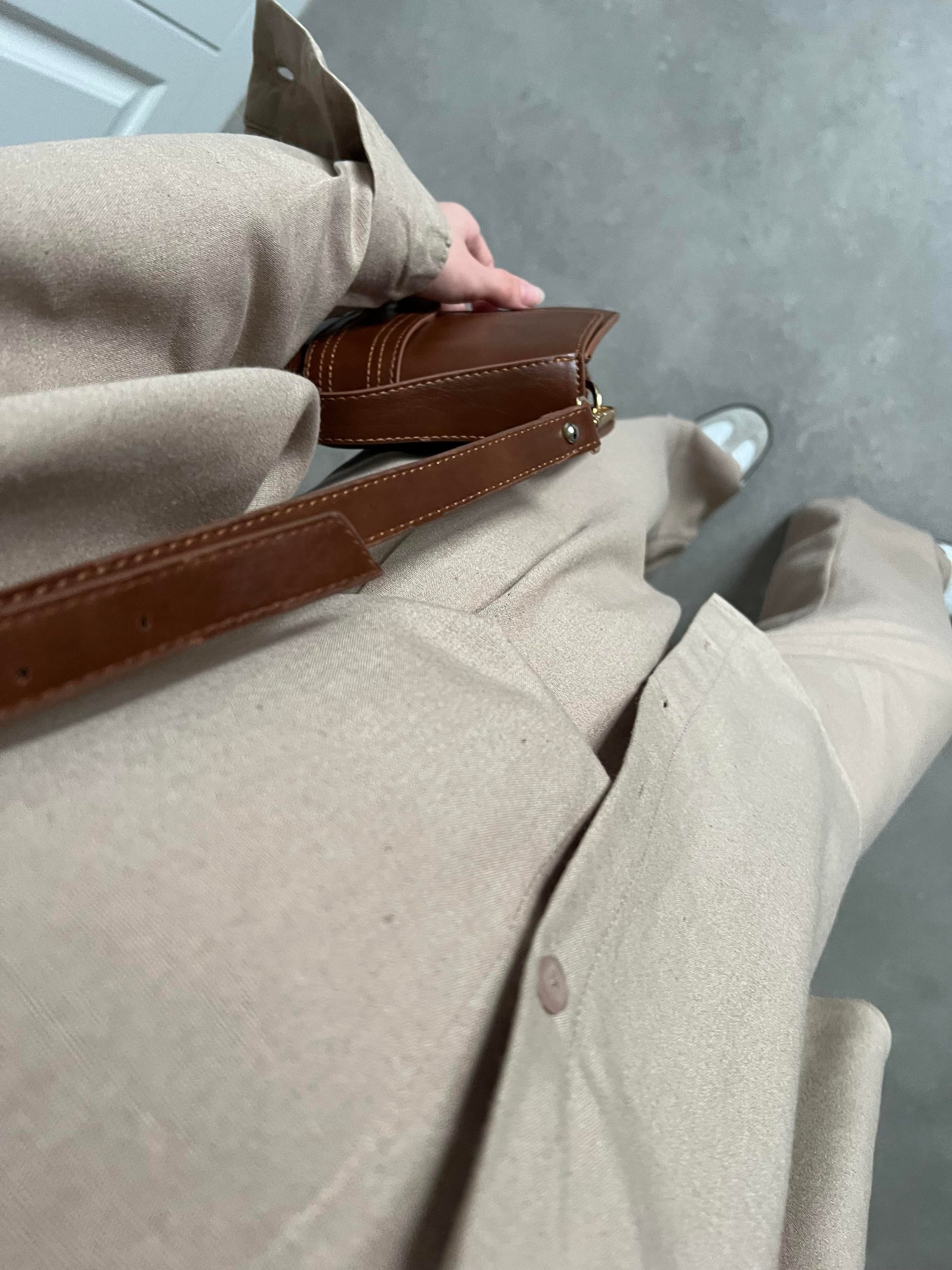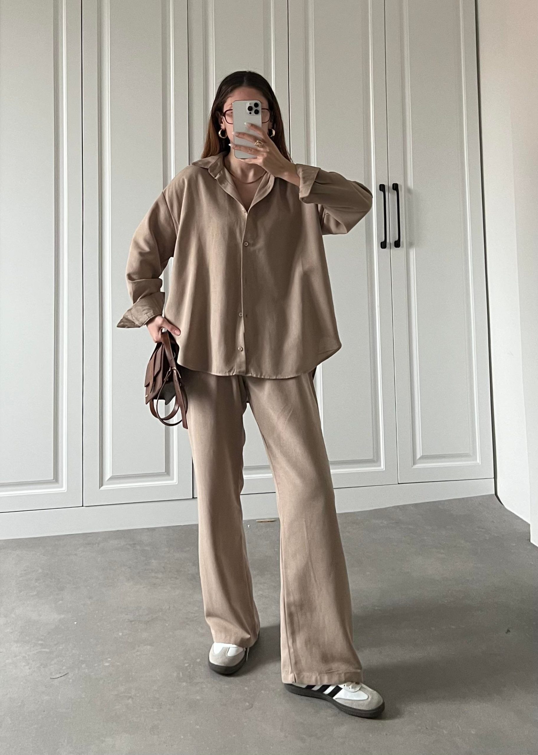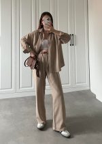 Camel Gofre Crop Gömlek Takım