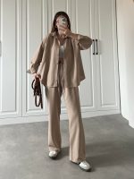 Taş Rengi Keten Palazzo İkili Takım