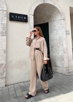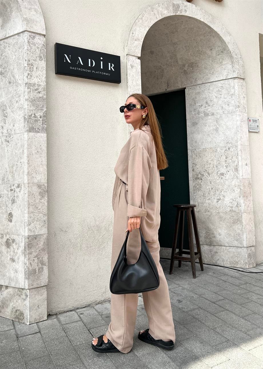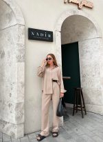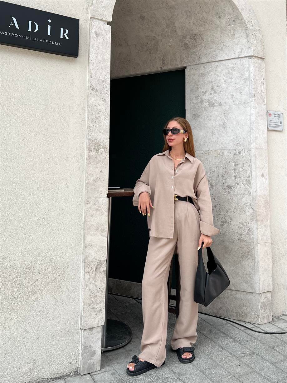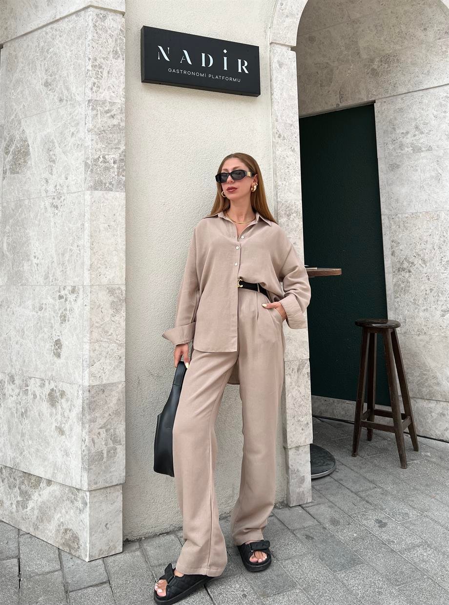 Taş Rengi Keten Palazzo İkili Takım