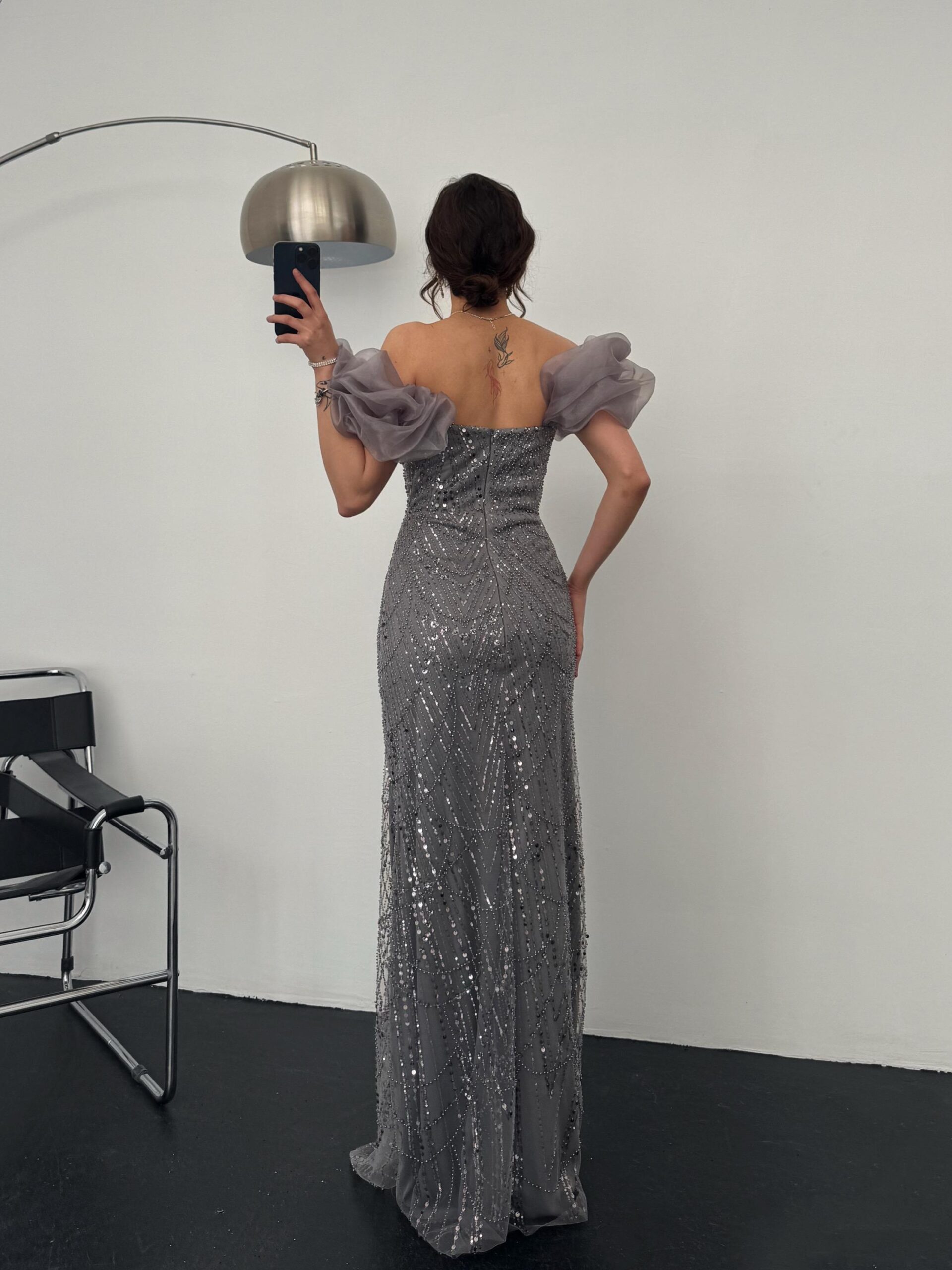 Ana Sayfa ÇOK SATANLAR Cristina Balon Kol Payet Detay Gri Abiye