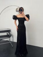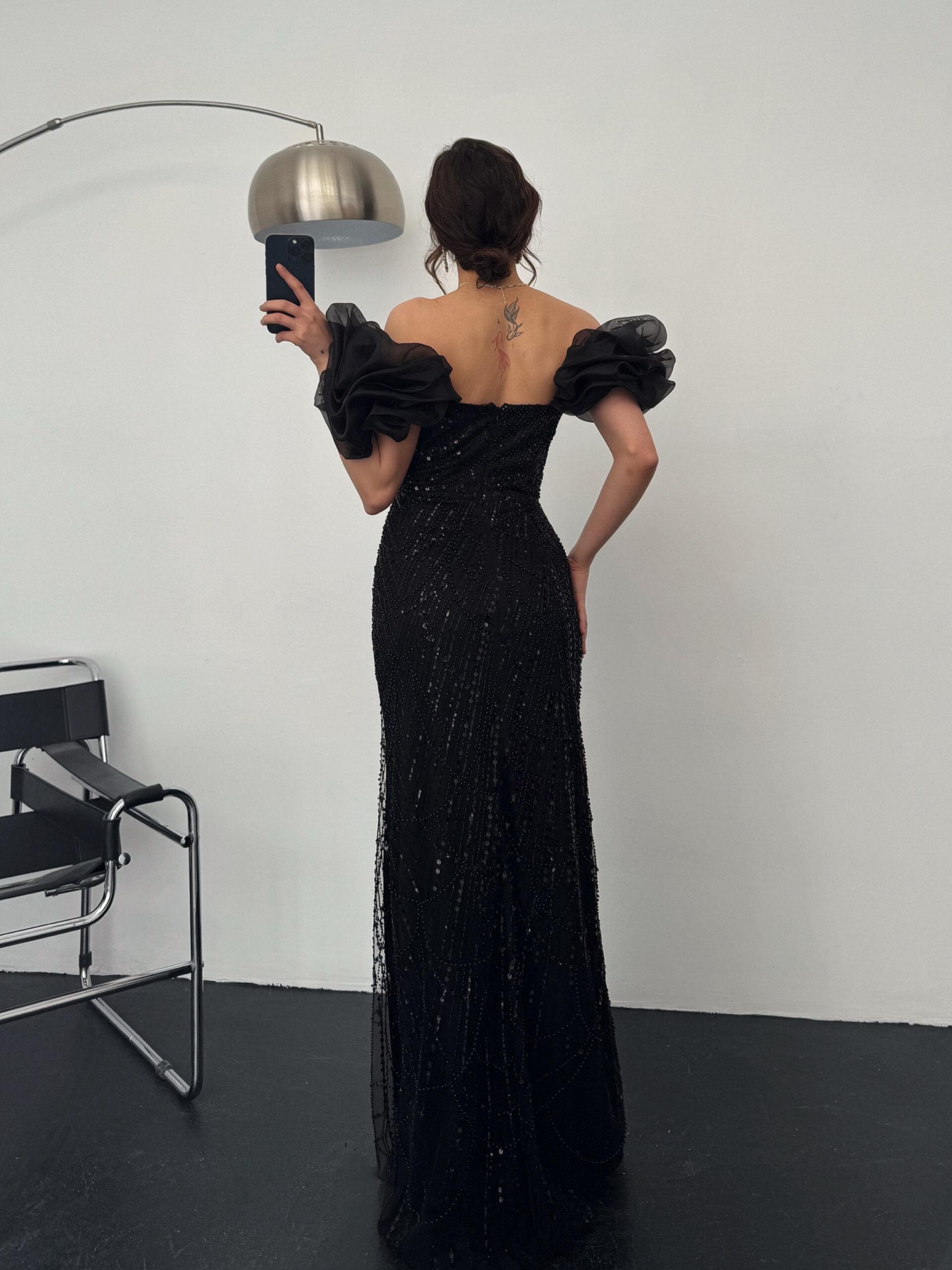 Ana Sayfa YENİ GELENLER Cristina Balon Kol Payet Detay Siyah Abiye