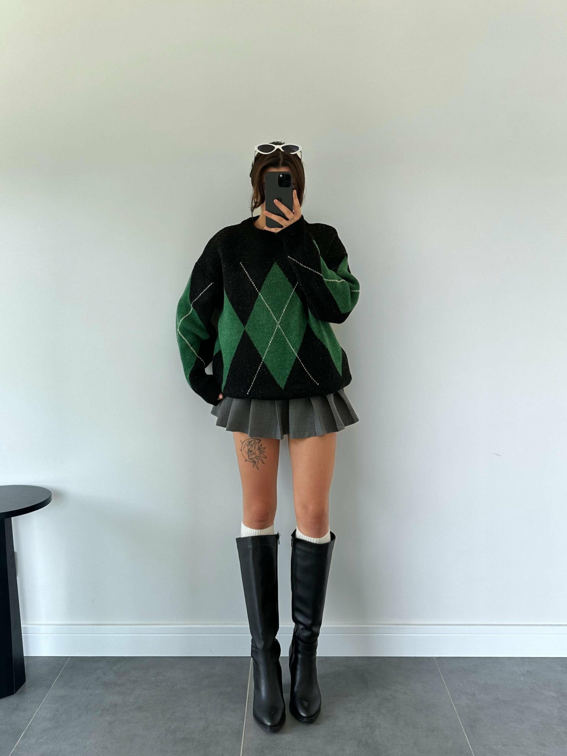 Culebra Siyah Yeşil Baklava Desenli Kazak