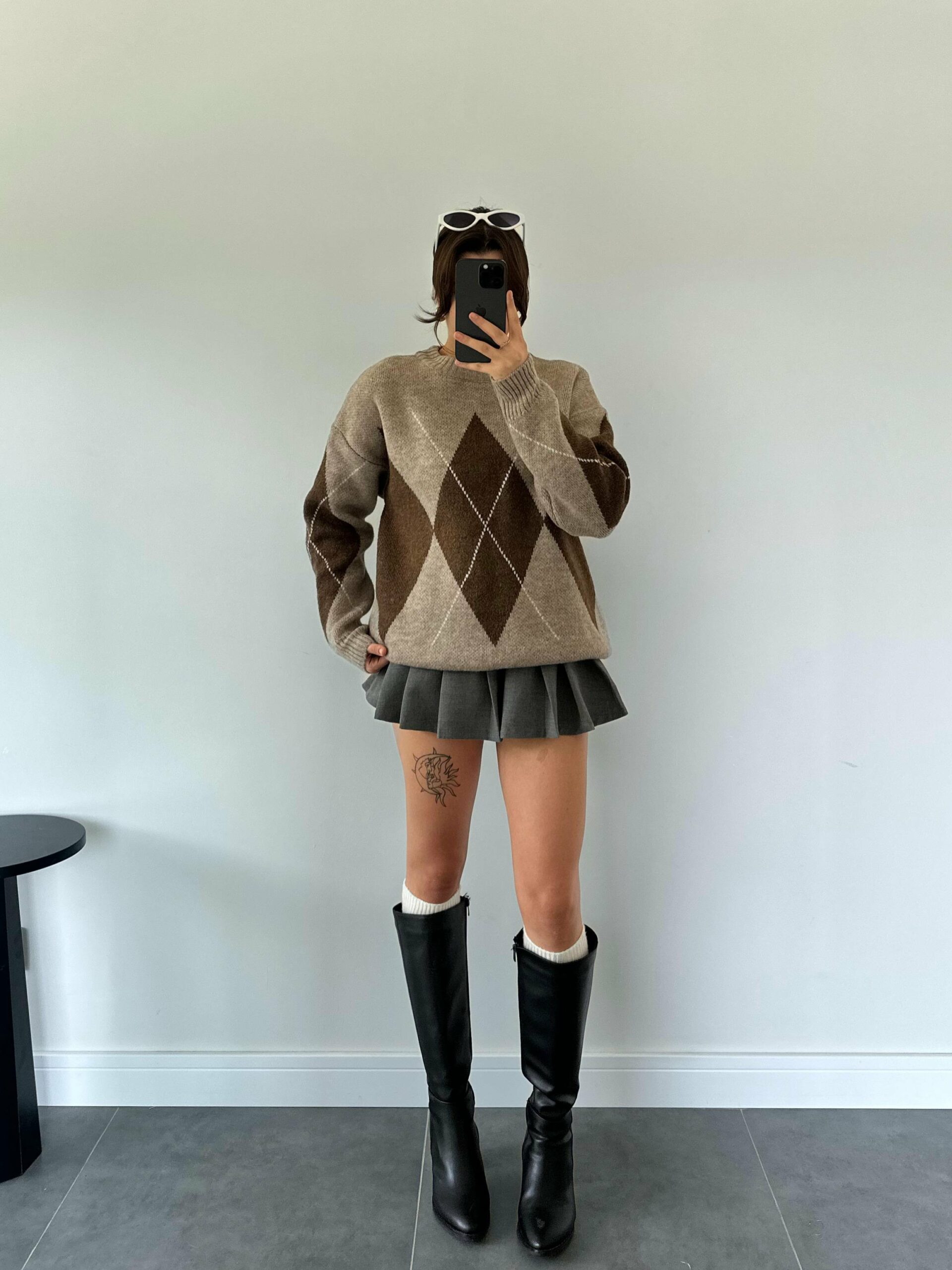 Culebra Vizon Kahve Baklava Desenli Kazak