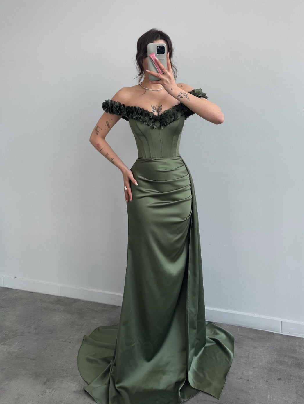 Ana Sayfa ÇOK SATANLAR Elizabeth Korseli Çiçek Detay Haki Abiye