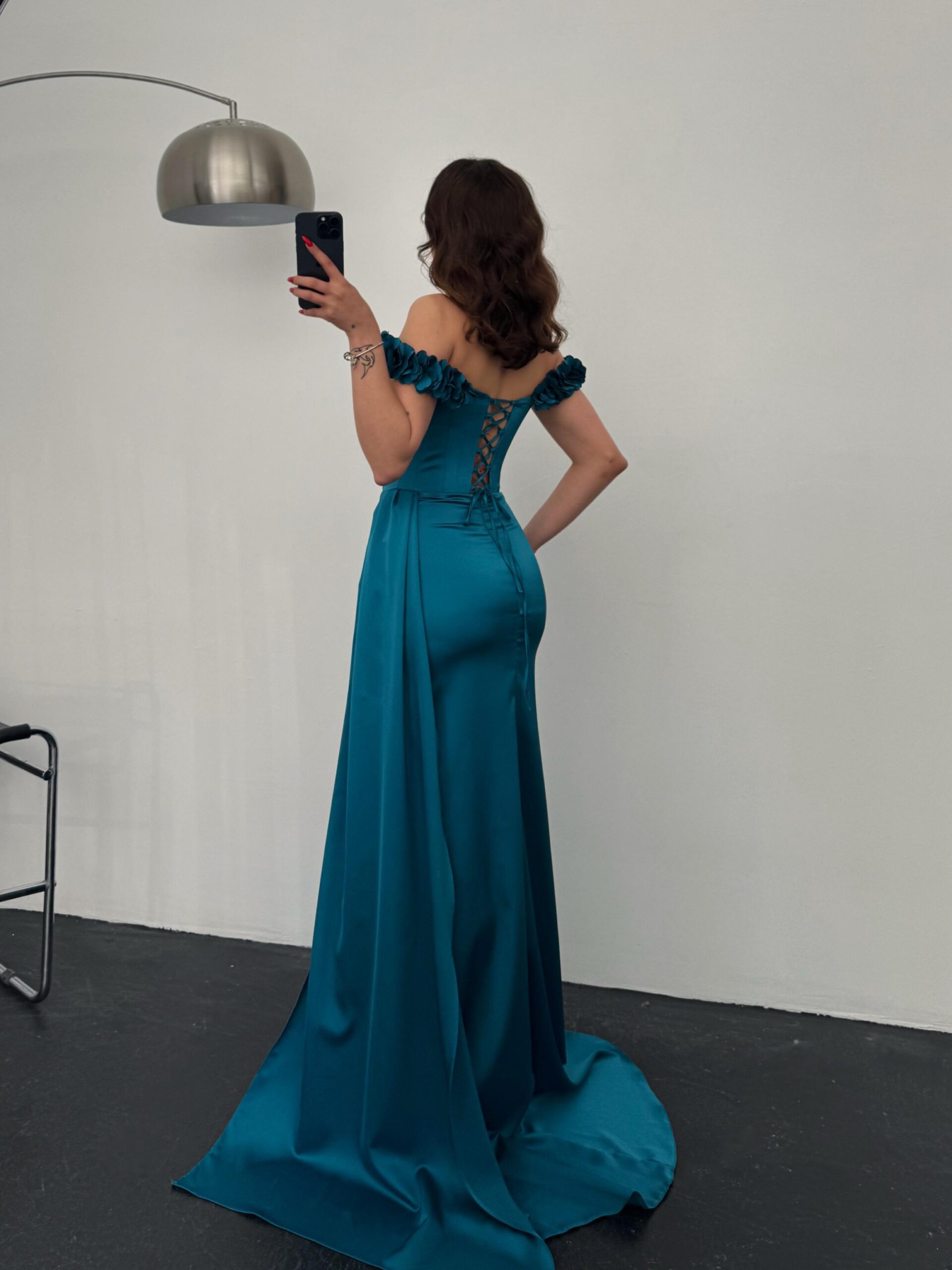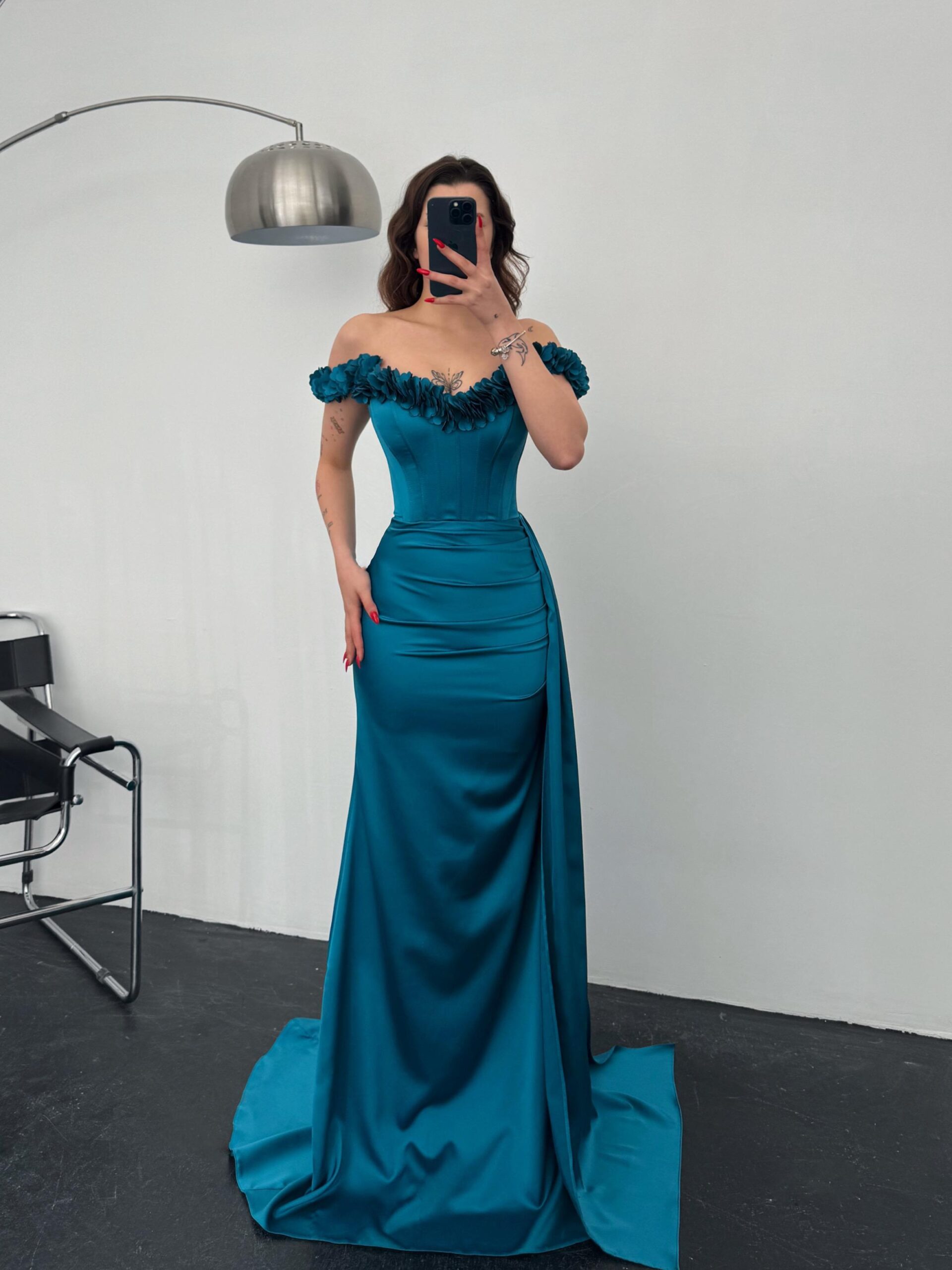 Elizabeth Korseli Çiçek Detay Petrol Abiye