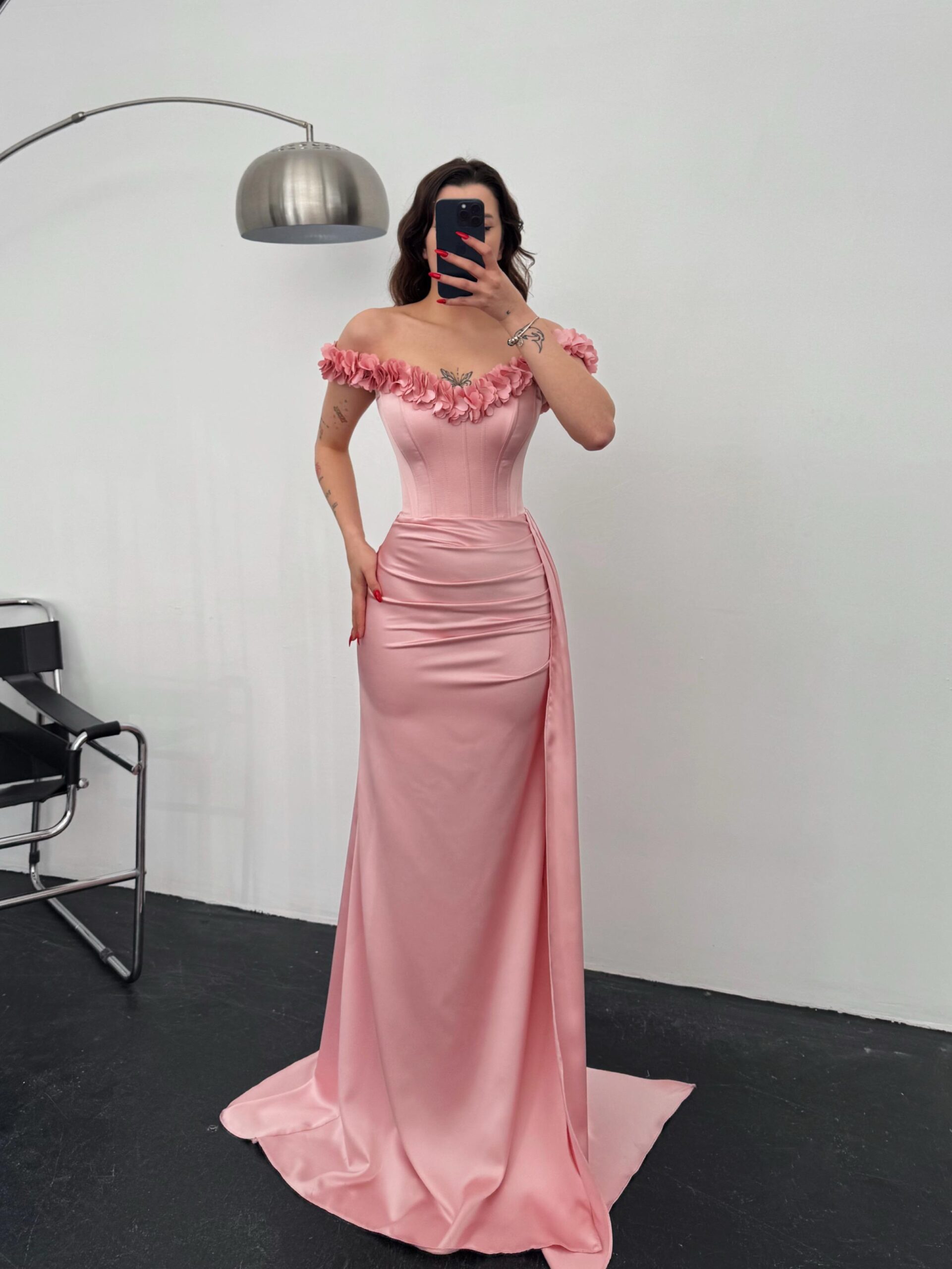 Elizabeth Korseli Çiçek Detay Pudra Abiye