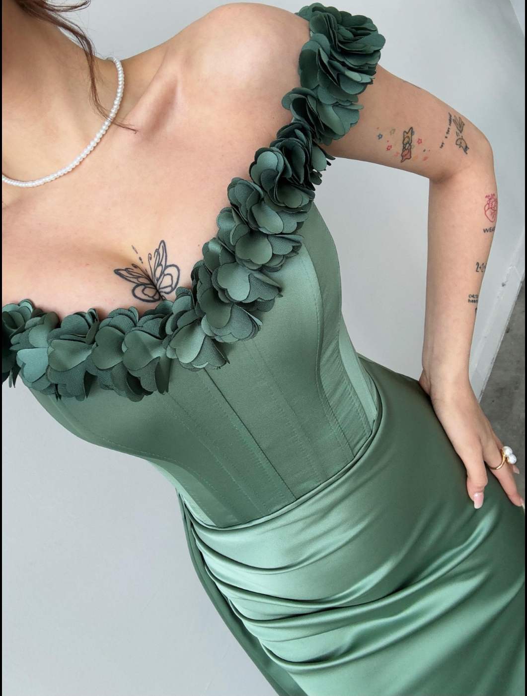 Elizabeth Korseli Çiçek Detay Su Yeşili Abiye