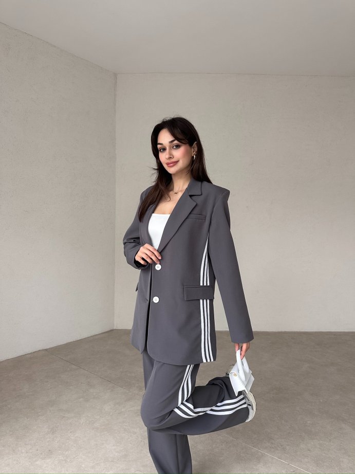 Antrasit Beli Kemerli Gofre İkili Takım