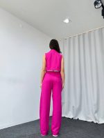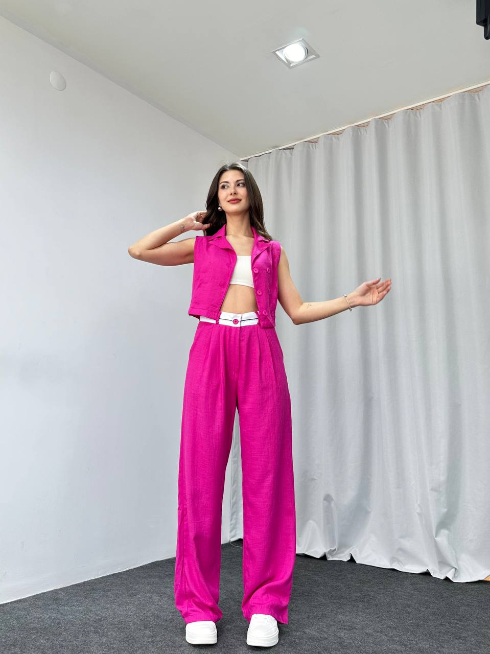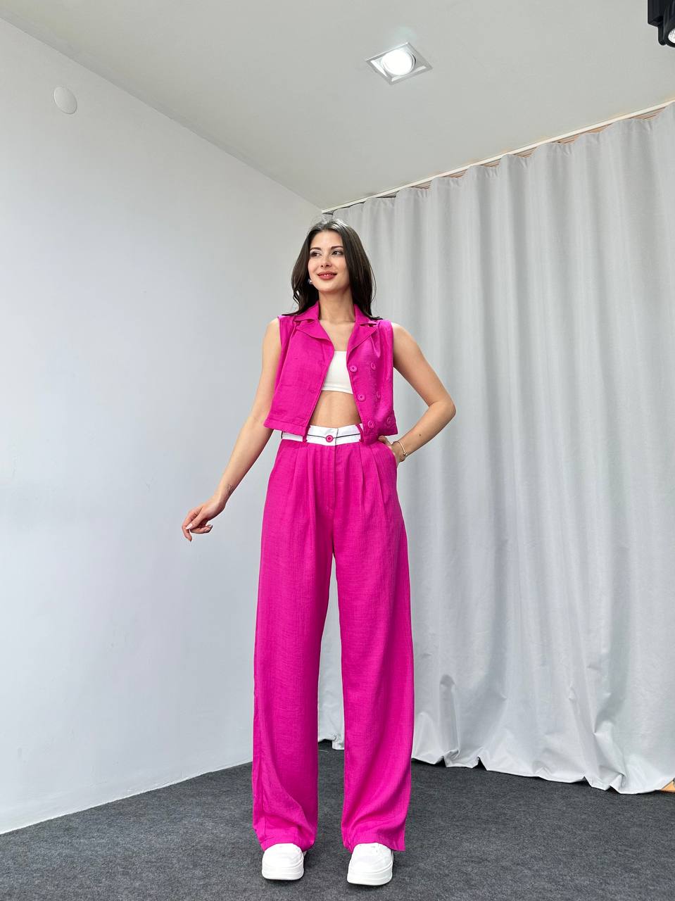 Fuşya Bel Detaylı Plazzo-Yelek Takım