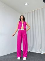 Ana Sayfa ÇOK SATANLAR Fuşya Bel Detaylı Plazzo-Yelek Takım