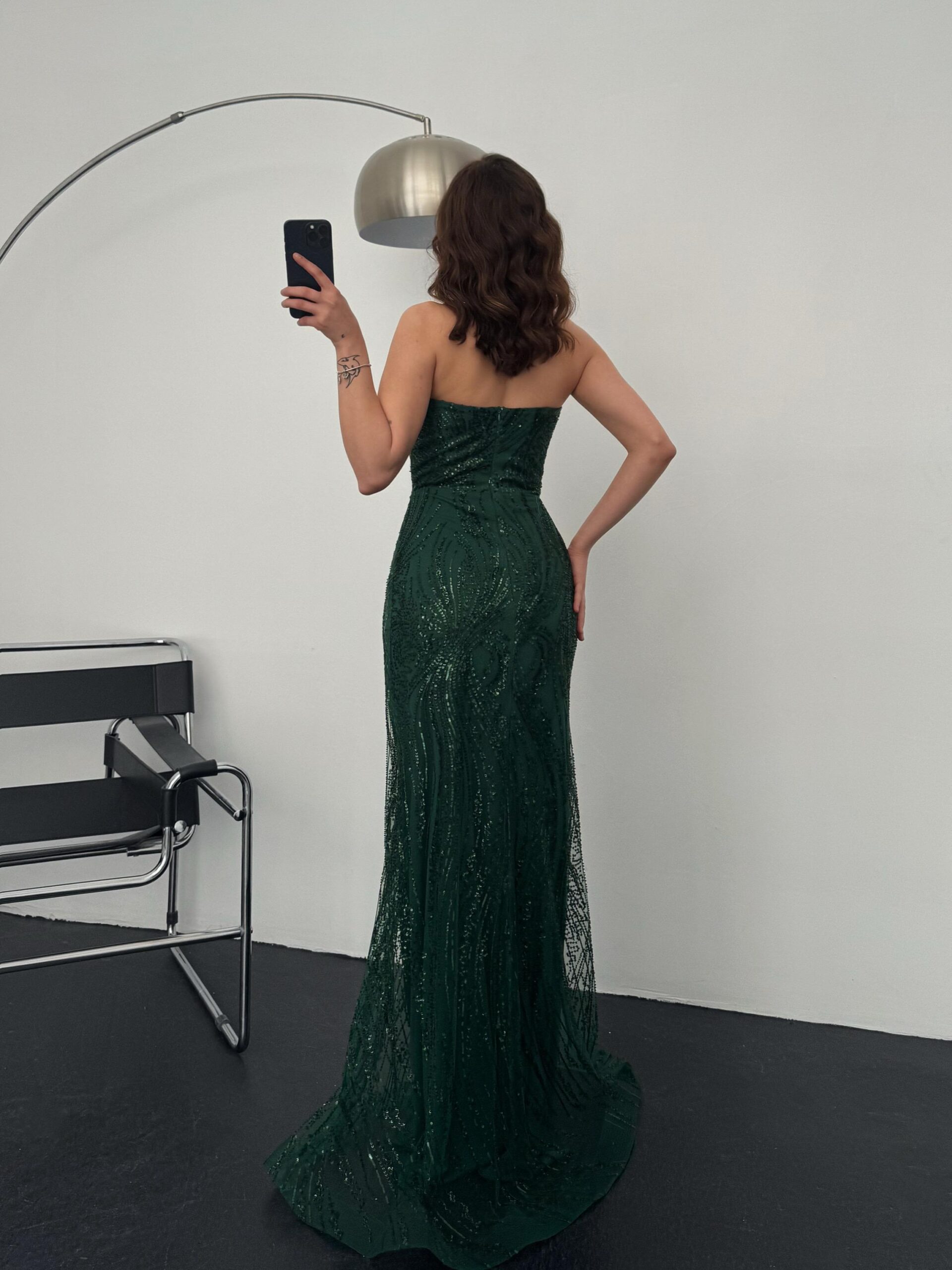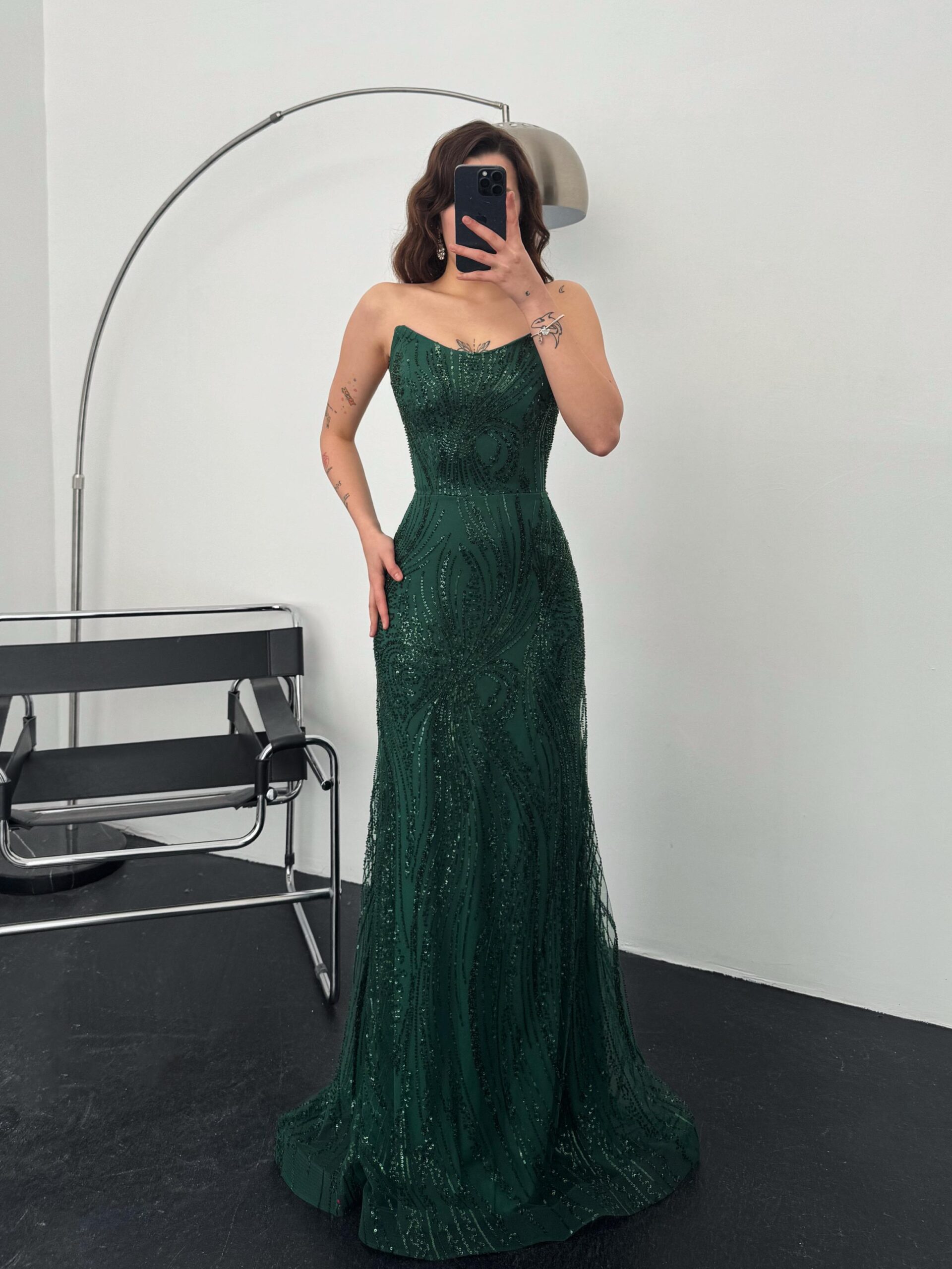 Gabriella Straplez Taş Detay Zümrüt Abiye