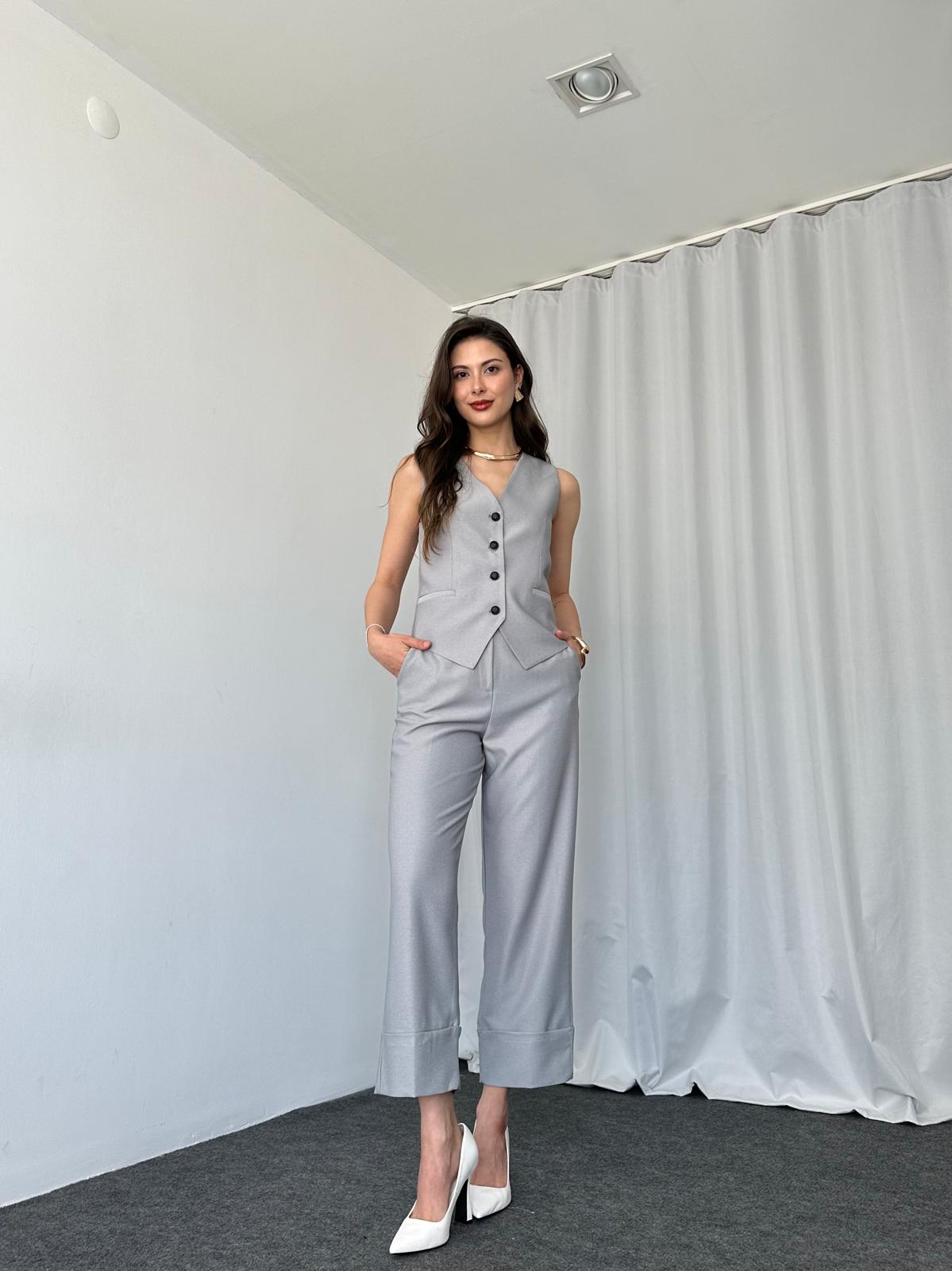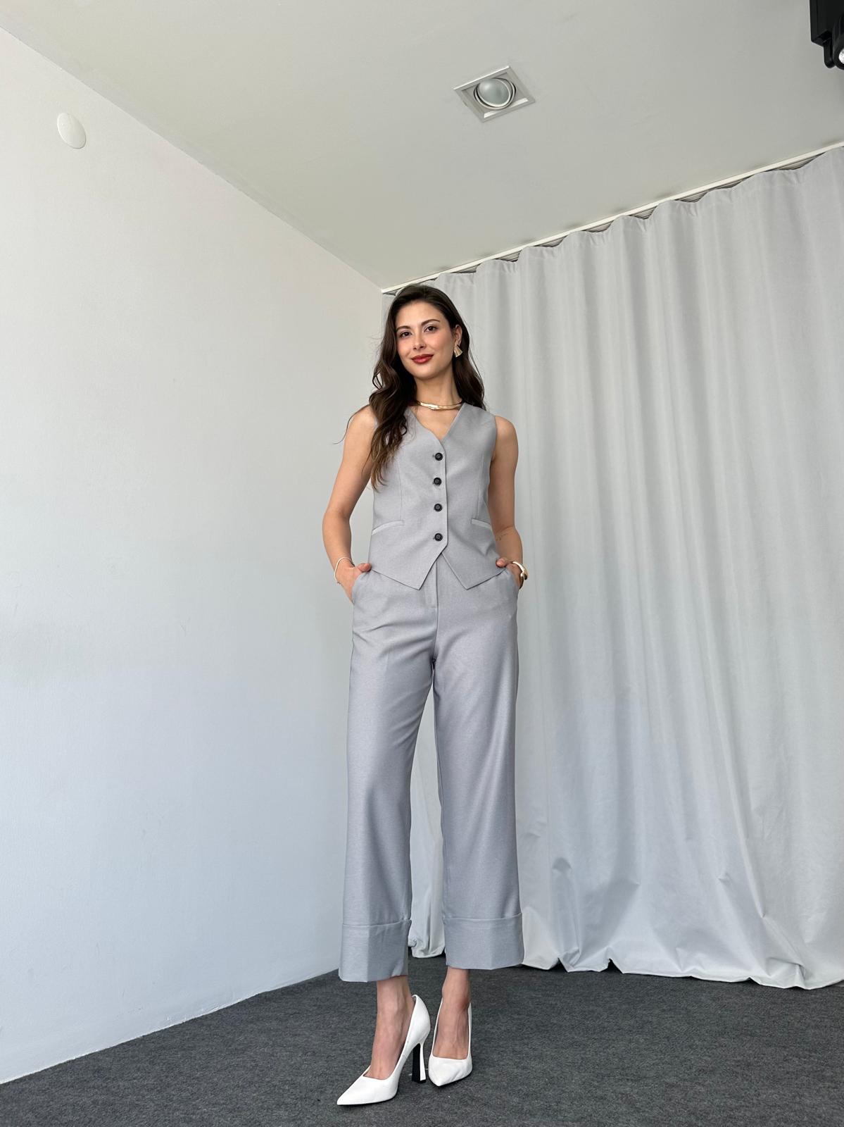 Ana Sayfa ÇOK SATANLAR Gri Double Paça Pantolon-Yelek takım