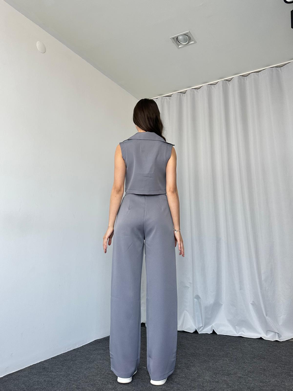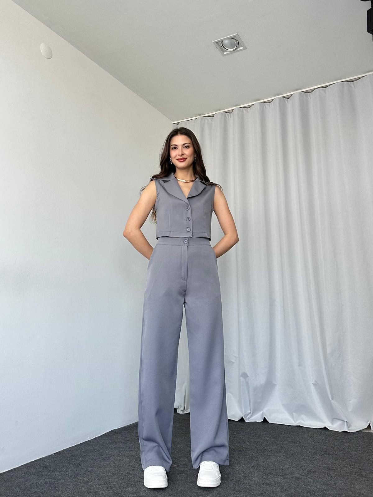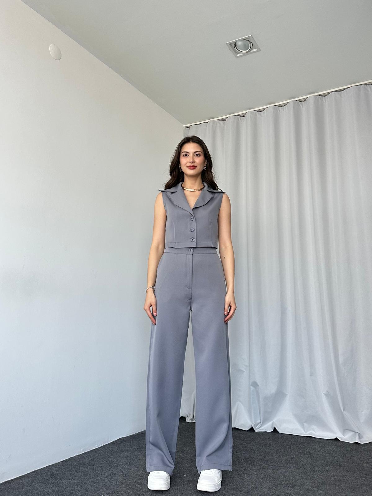 Gri Kısa Yelekli-Palazzo Takım