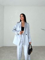 Takım kumaşı ince liflerden üretilmiş sık dokuma tekniğiyle işlenmiş satendir.