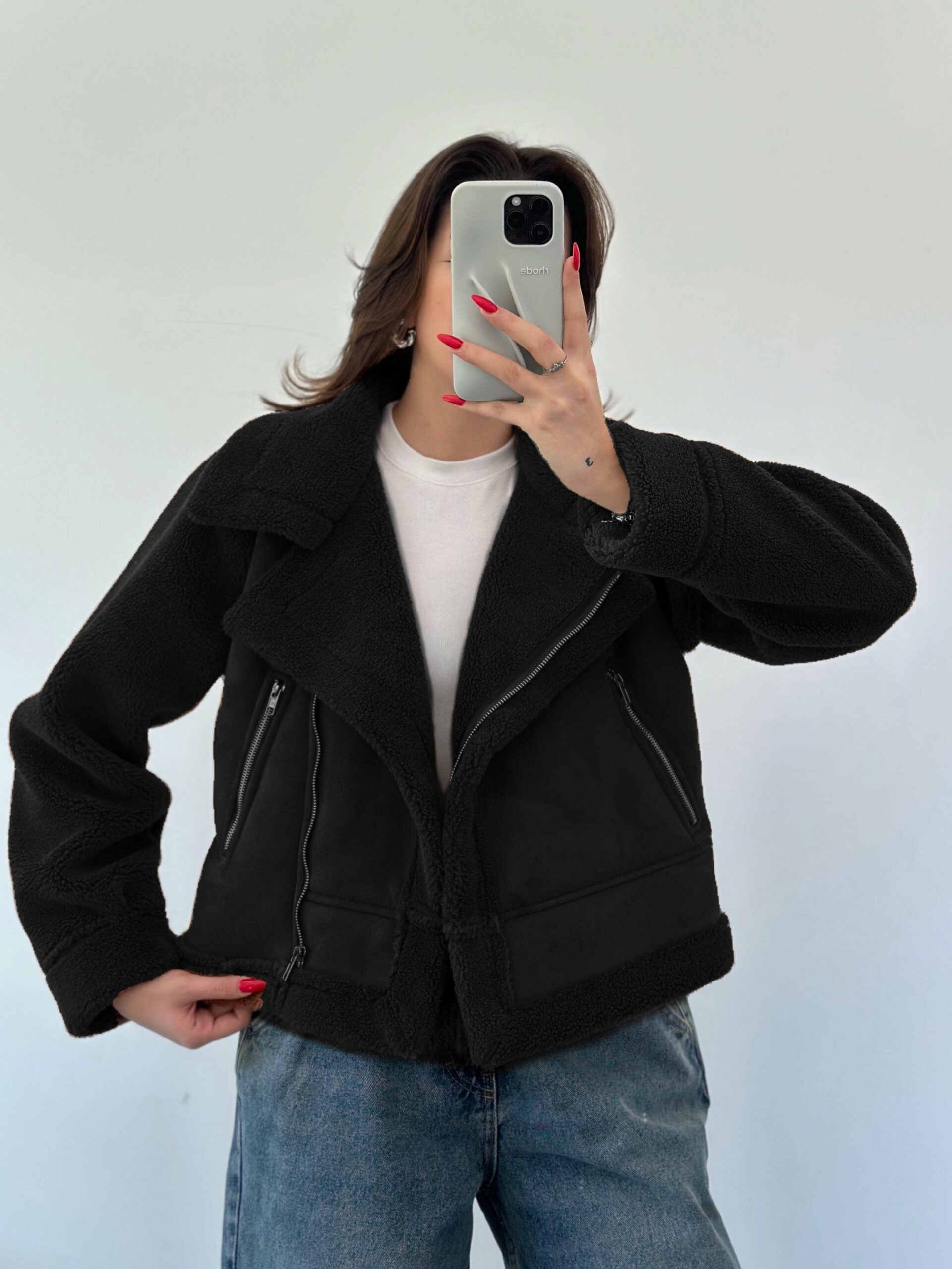 Grow Siyah Lamine Nubuk Kürk Ceket