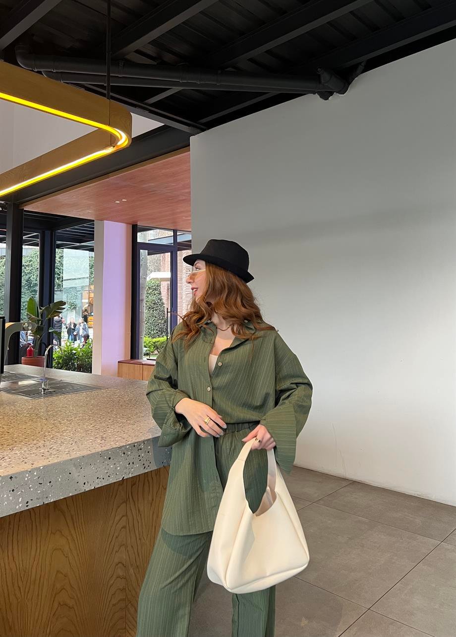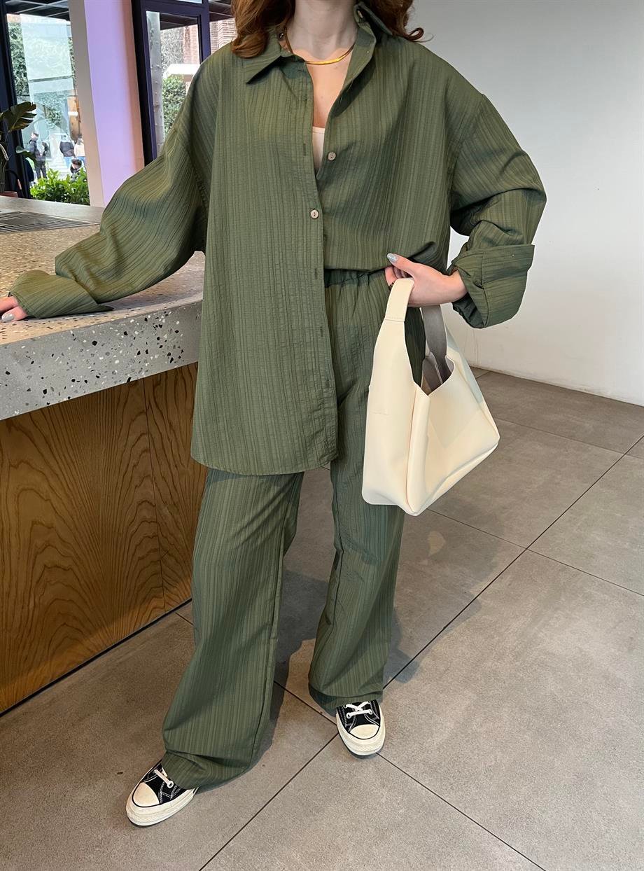 Taş Gofre Crop Gömlek Takım