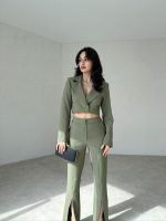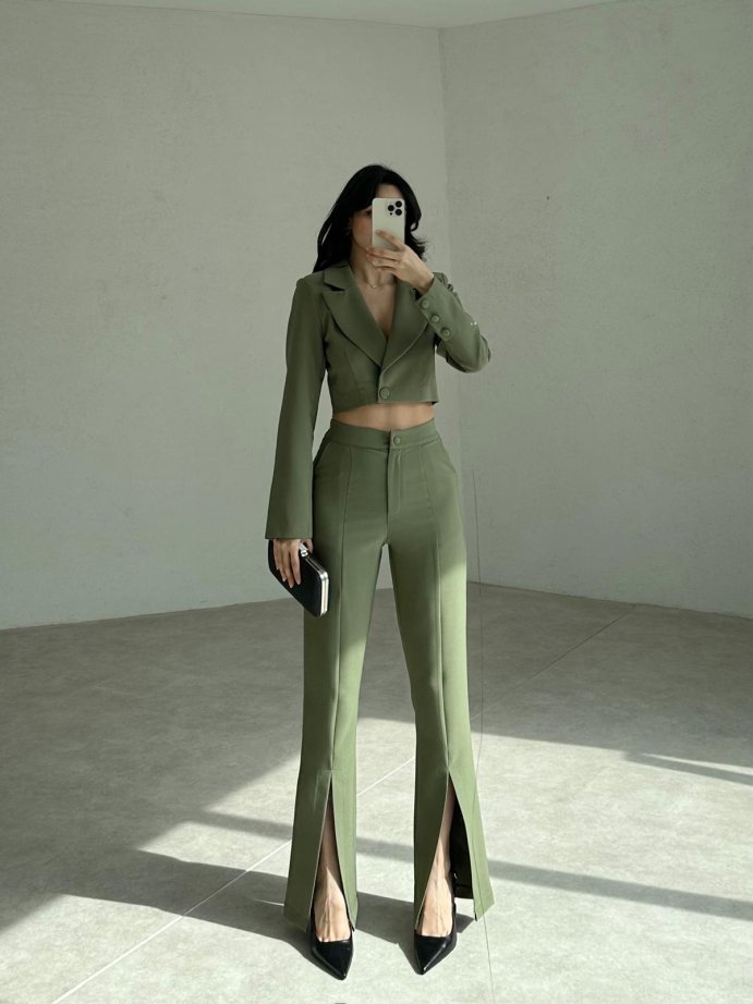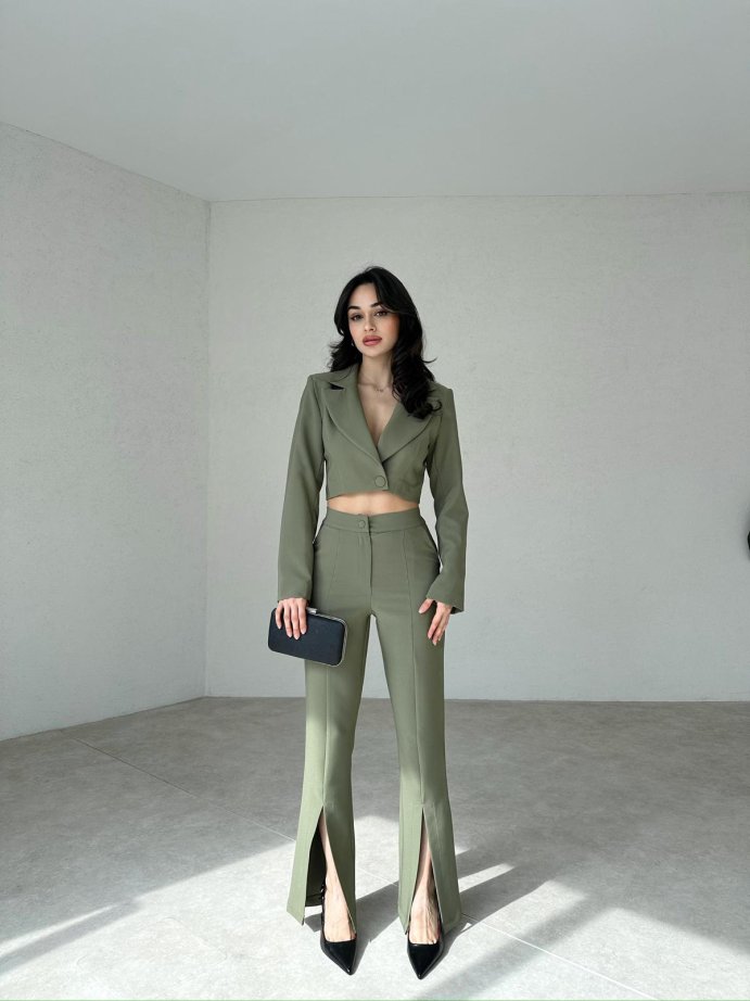 Haki Paçası Yırtmaç Detaylı CARY Takım