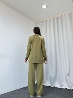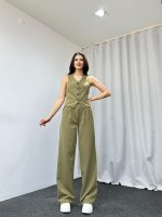 Fıstık Yeşili Gofre Crop Gömlek Takım