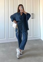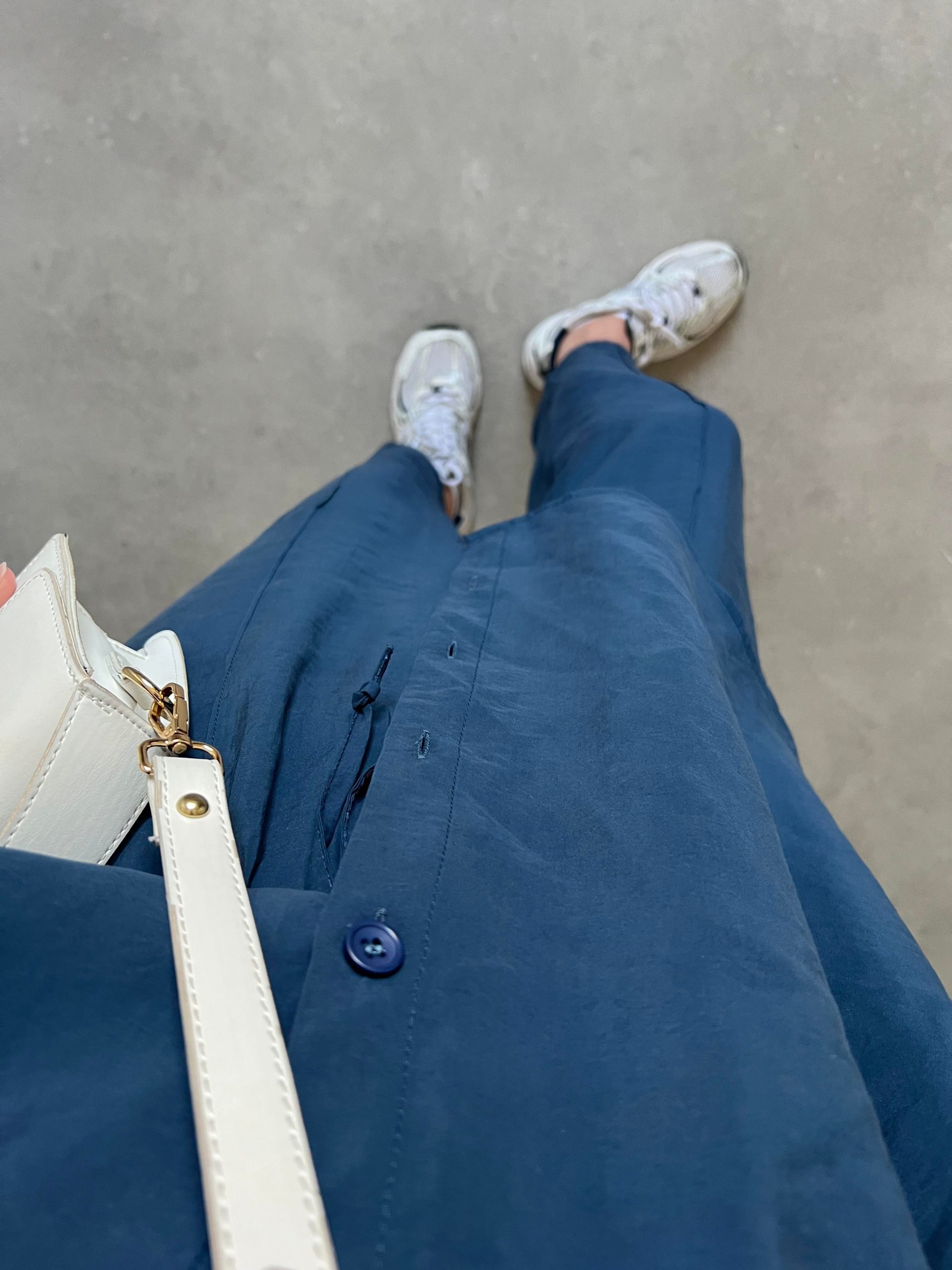 İndigo Ravi Tensel Kumaş Çımalı Şalvar Takım