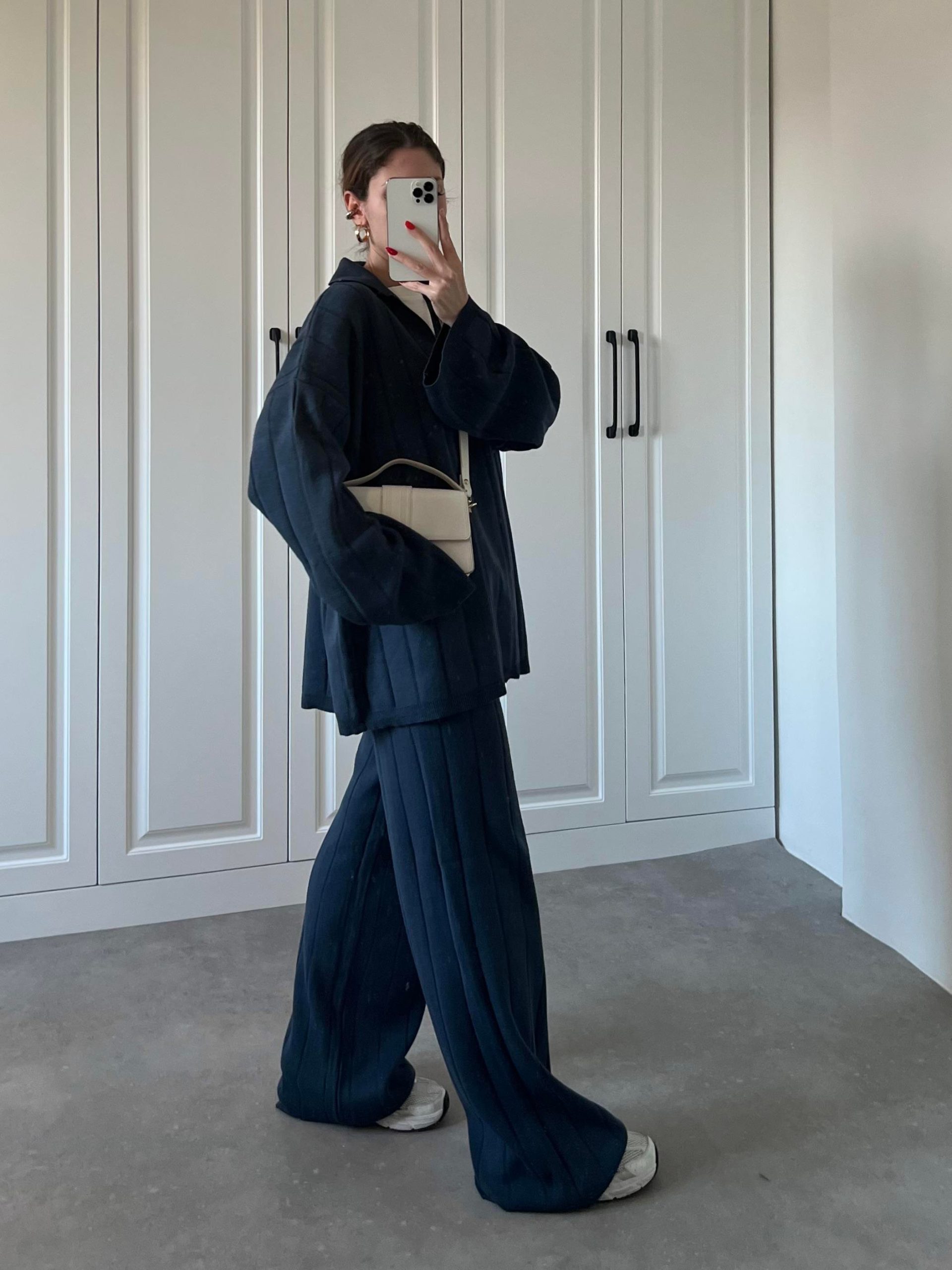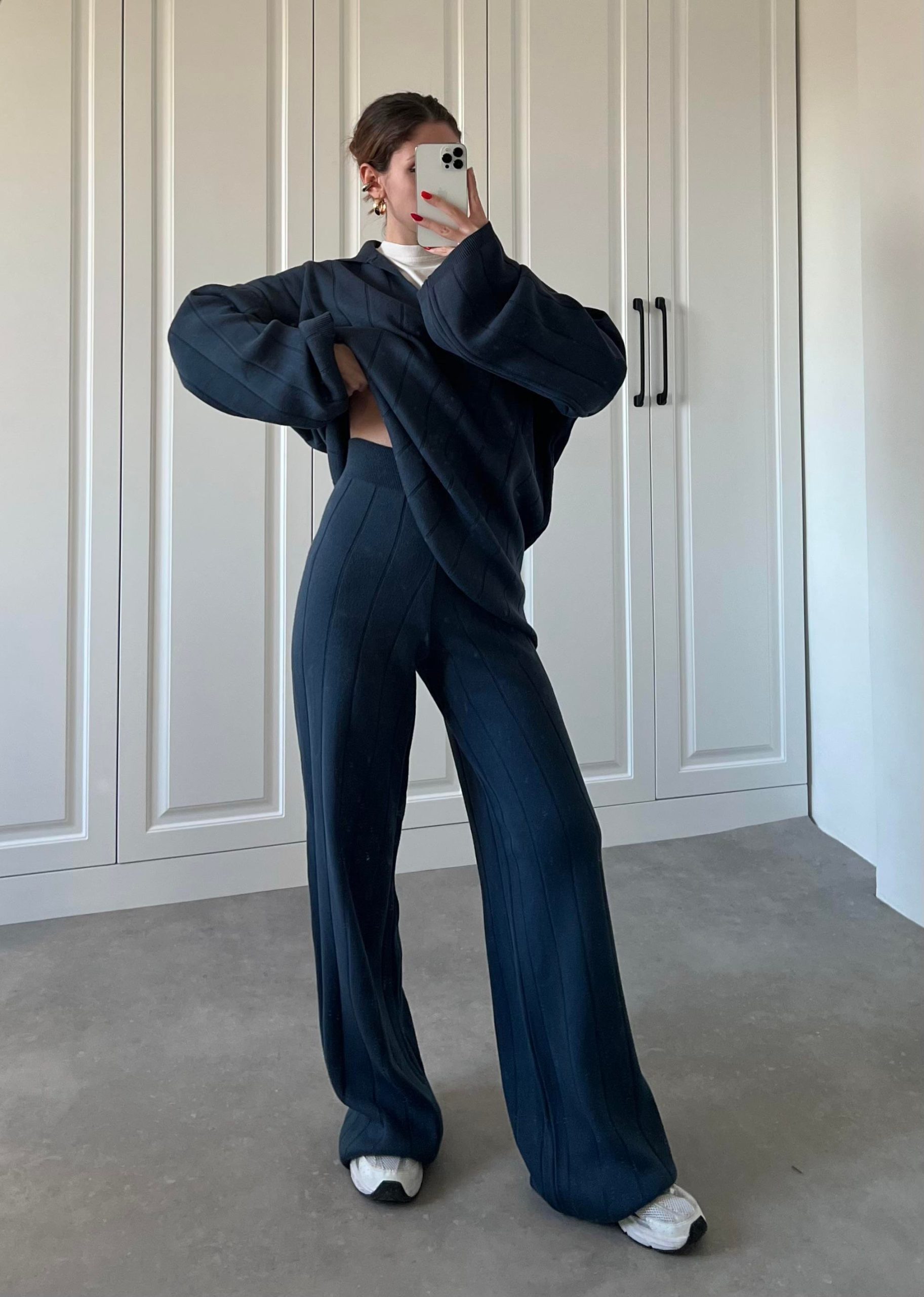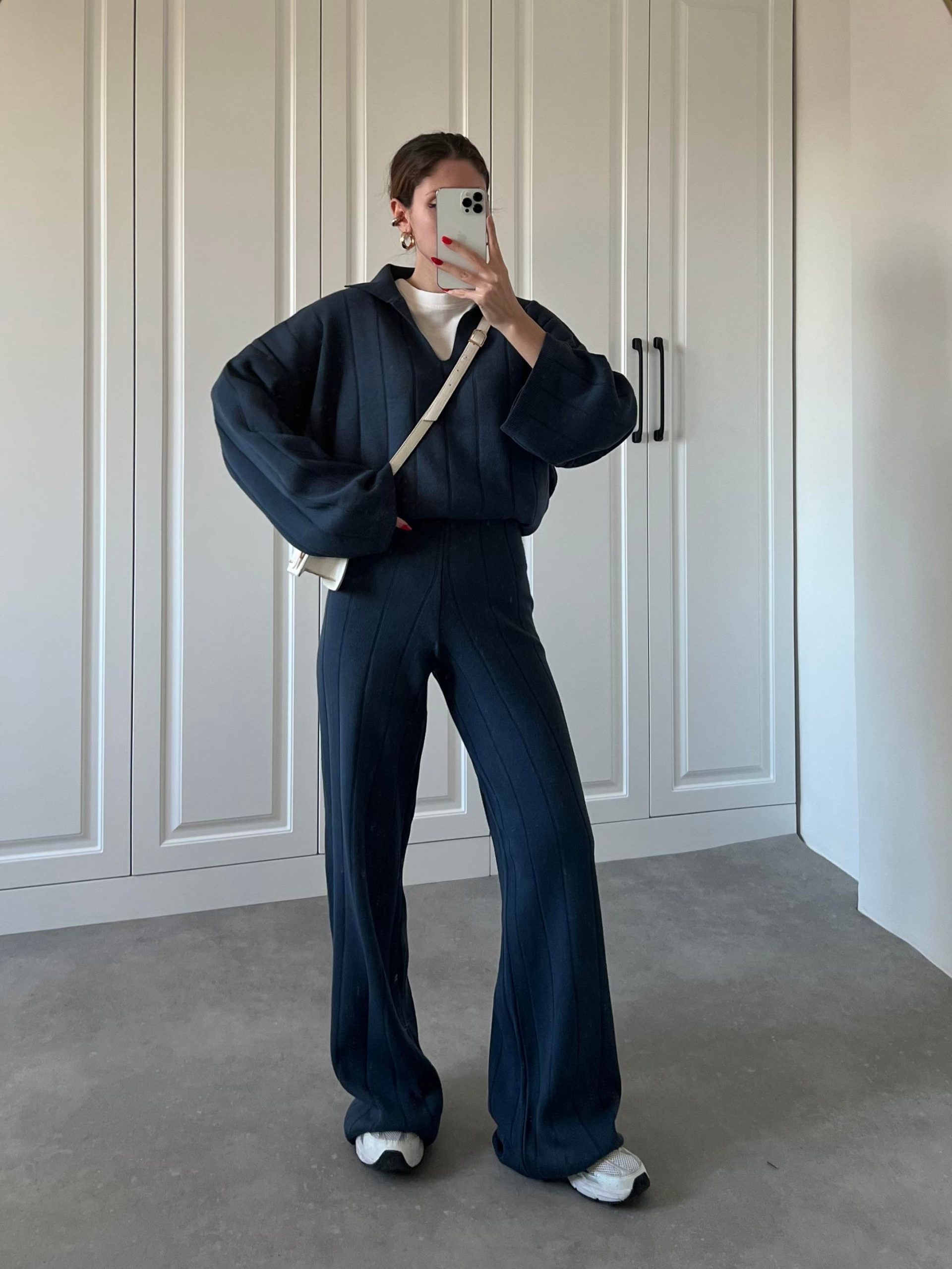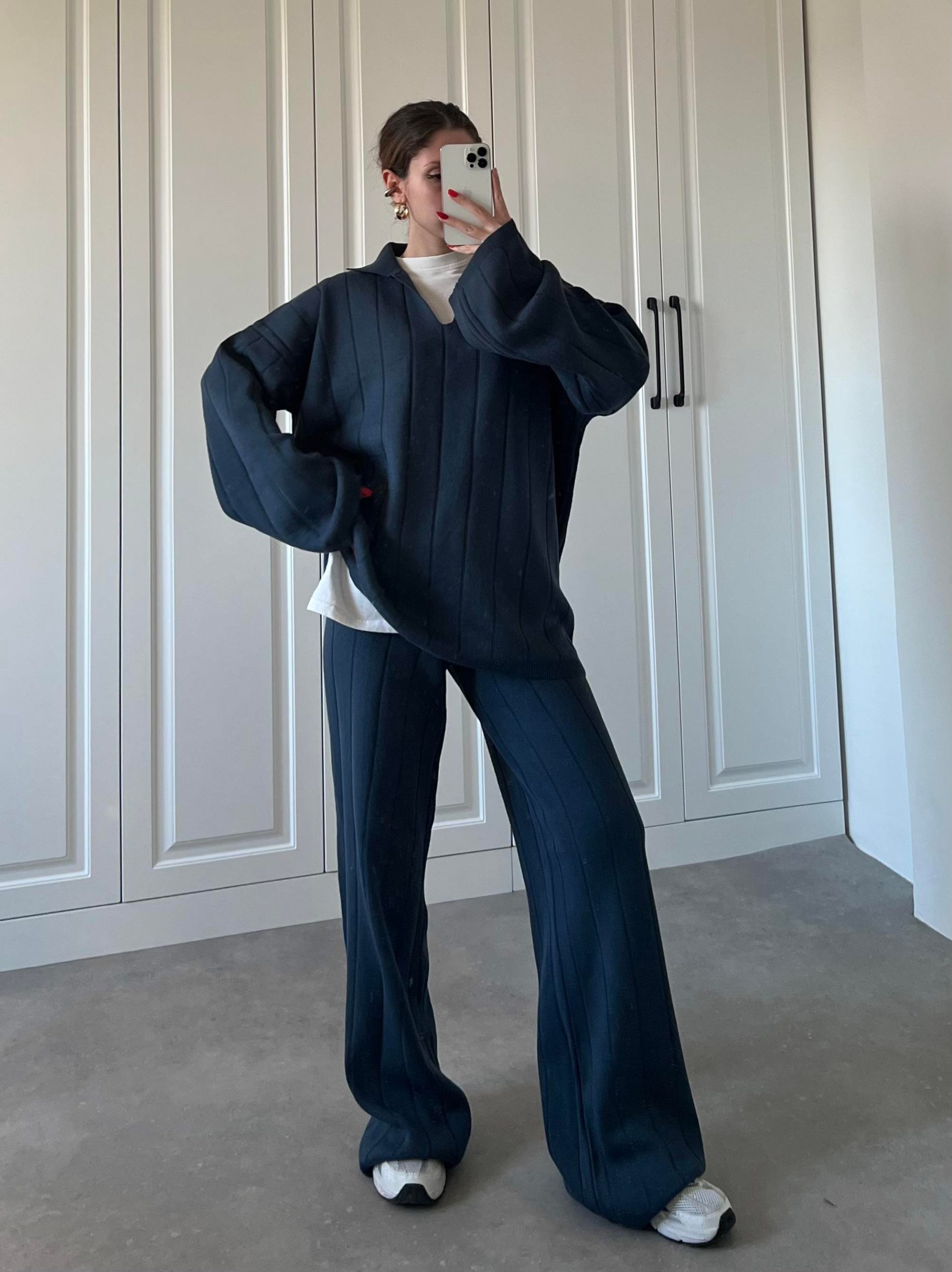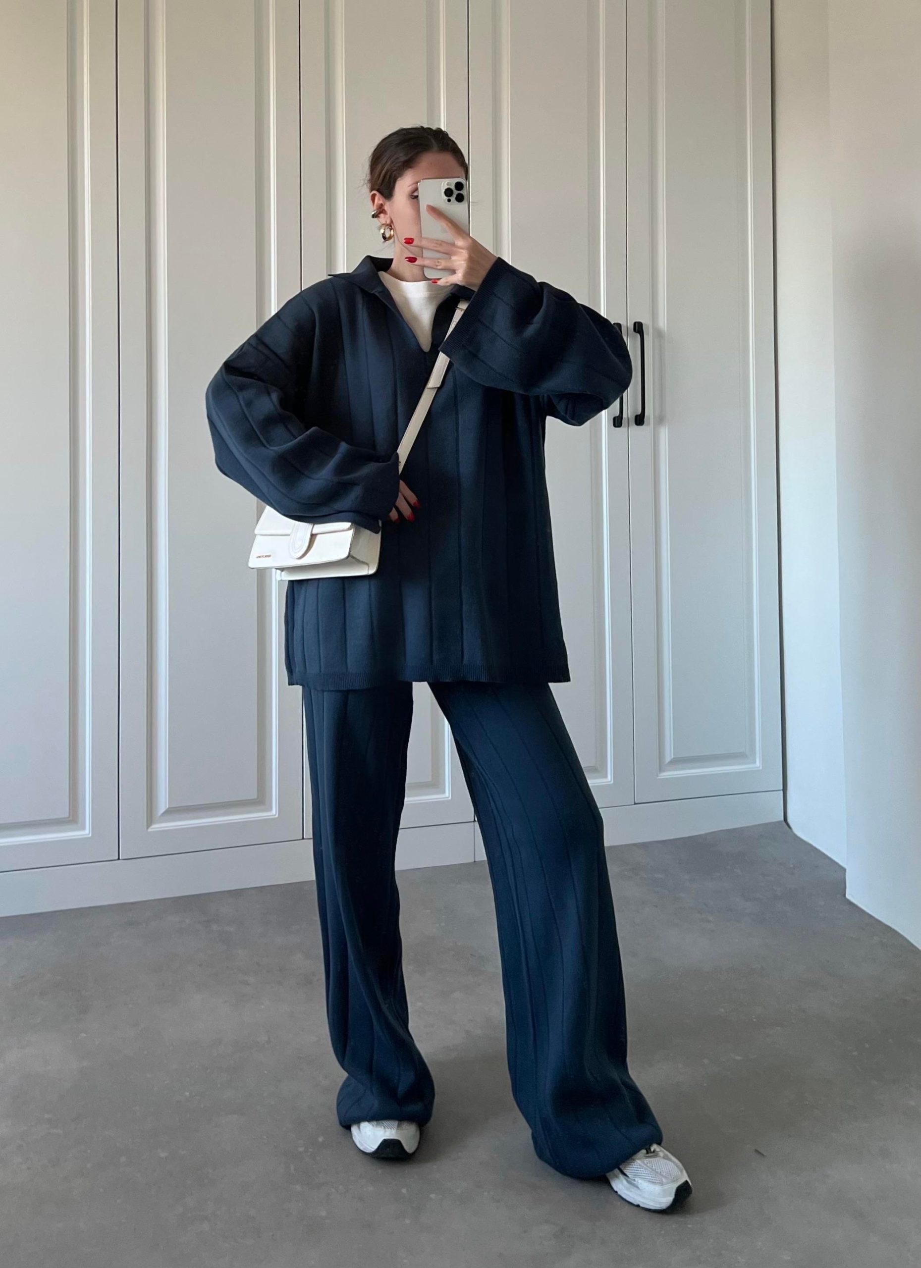 Ana Sayfa ÇOK SATANLAR İndigo V Yaka Oversize Triko Takım