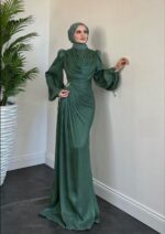 Jenika Omzu Ve Beli Taşlı Abiye Yeşil