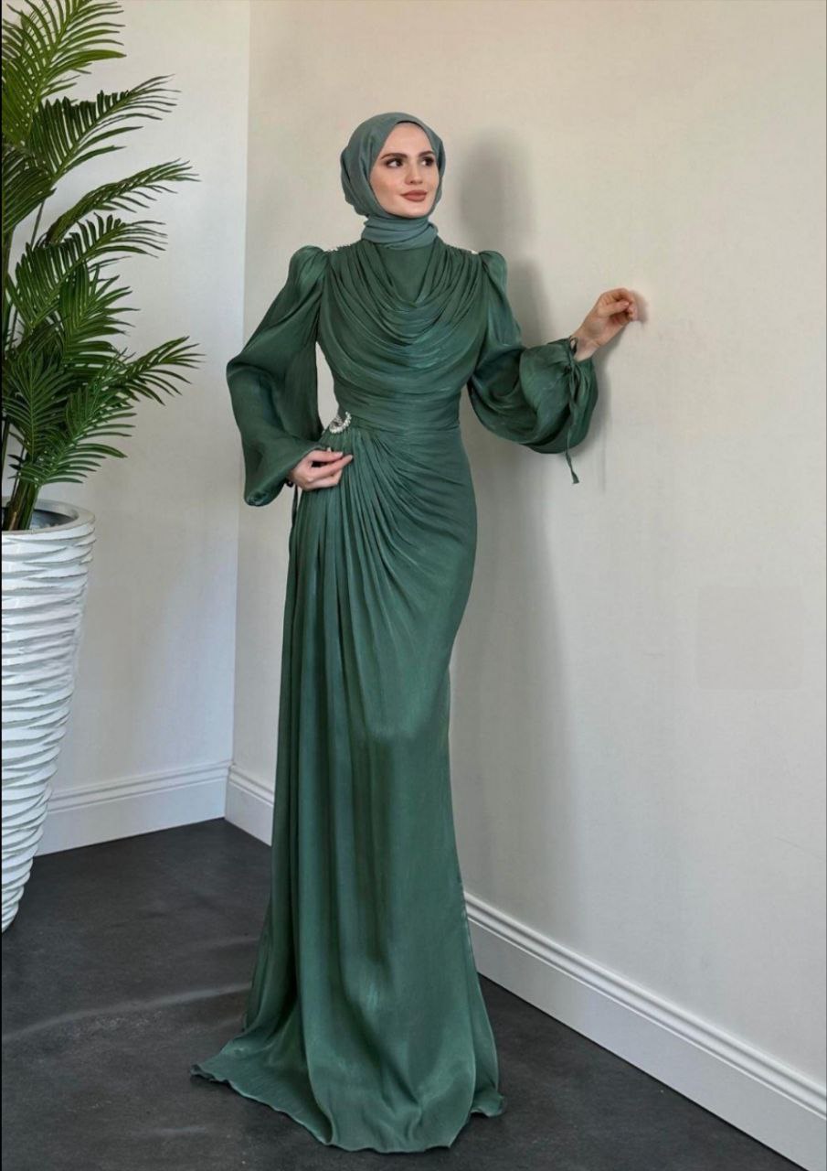 Ana Sayfa Elbise Jenika Omzu Ve Beli Taşlı Abiye Yeşil