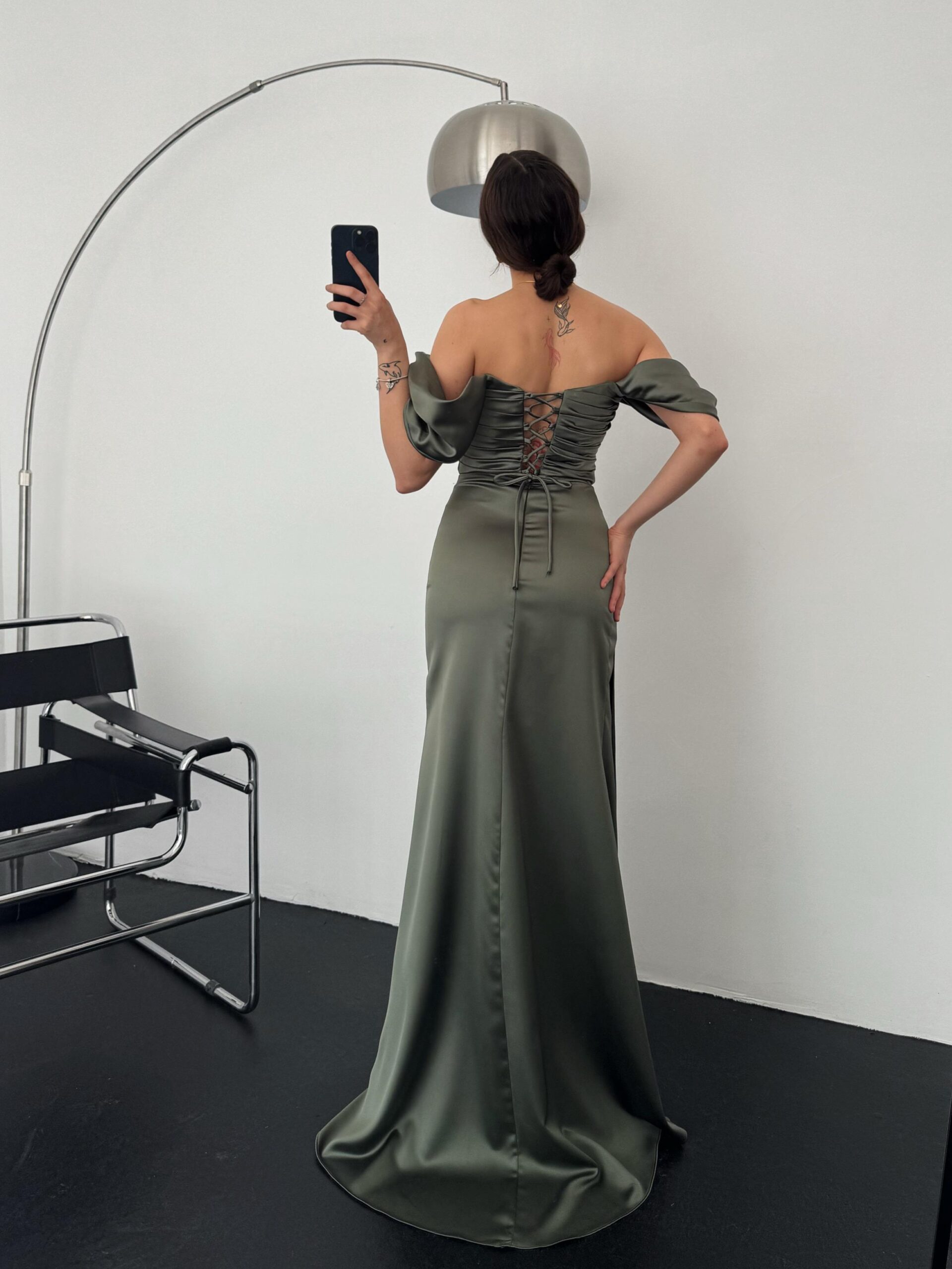 Jennifer Balon Kol Sırt Detay Haki Abiye
