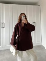 Ana Sayfa Yeni Sezon Kahve Yandan Bağlamalı Gabardin Kimono Ceket