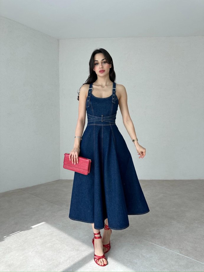 Kemer Askılı Midi PİRREL Elbise tam kalıplıdır.