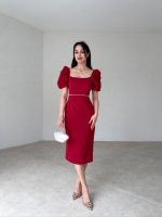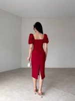 Fırfır Kollu Midi ANJELİKA Elbise tam kalıplıdır.