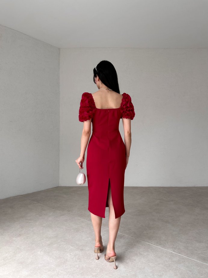 Kırmızı Fırfır Kollu Midi ANJELİKA Elbise