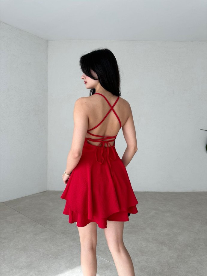 Sırt detaylı eteği şortlu Galway Elbise tam kalıplıdır.